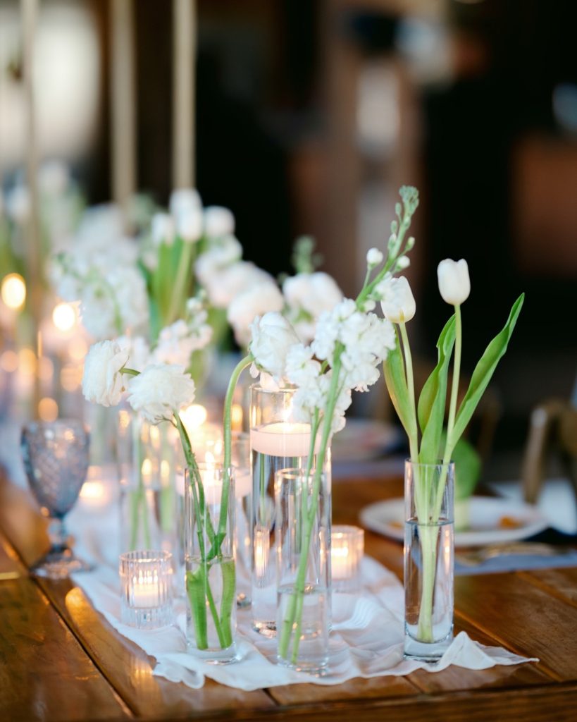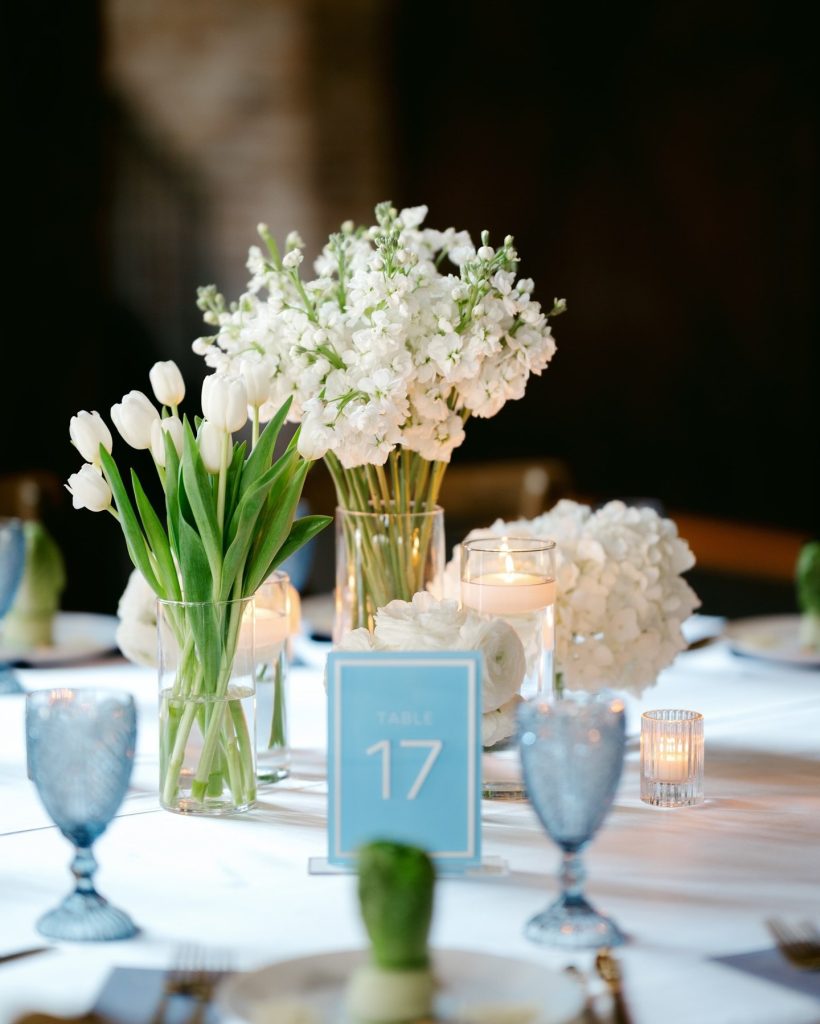 This celebration was a tulip-filled dream come true! Olivia & Peyton’s wedding was a vision of classic elegance with a fresh, modern twist. Olivia made the most radiant bride — glowing with joy and holding the dreamiest bouquet of tulips. From soft white florals and pale blue details to glowing candlelight and artful table scapes, every element felt intentional and effortlessly beautiful.