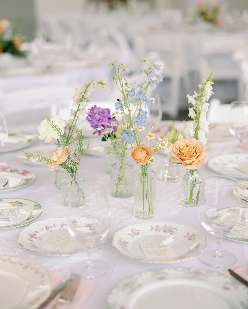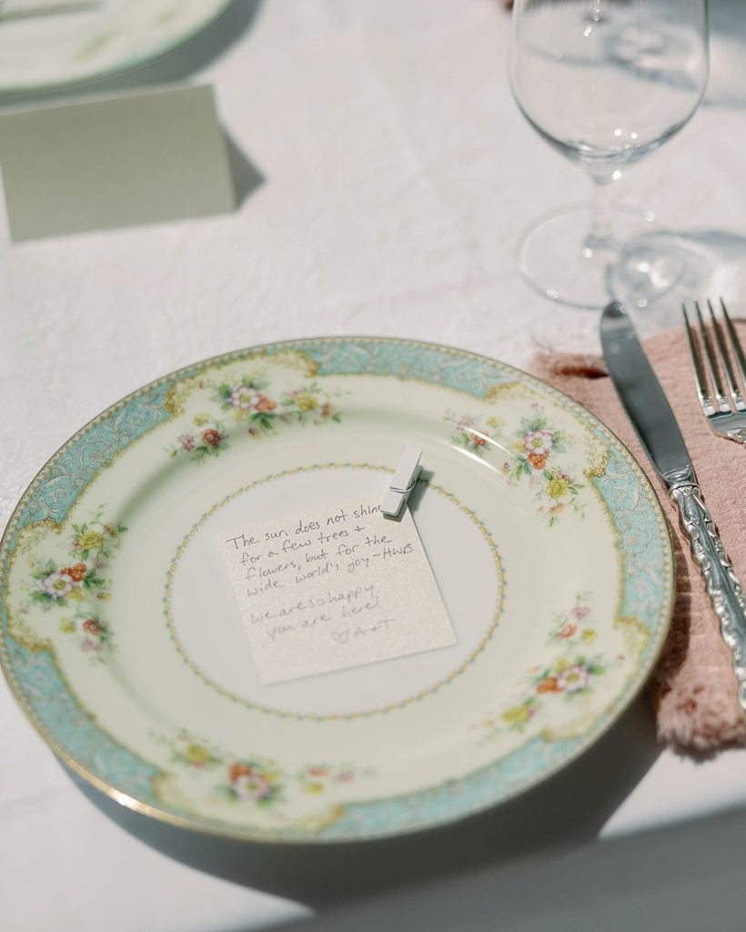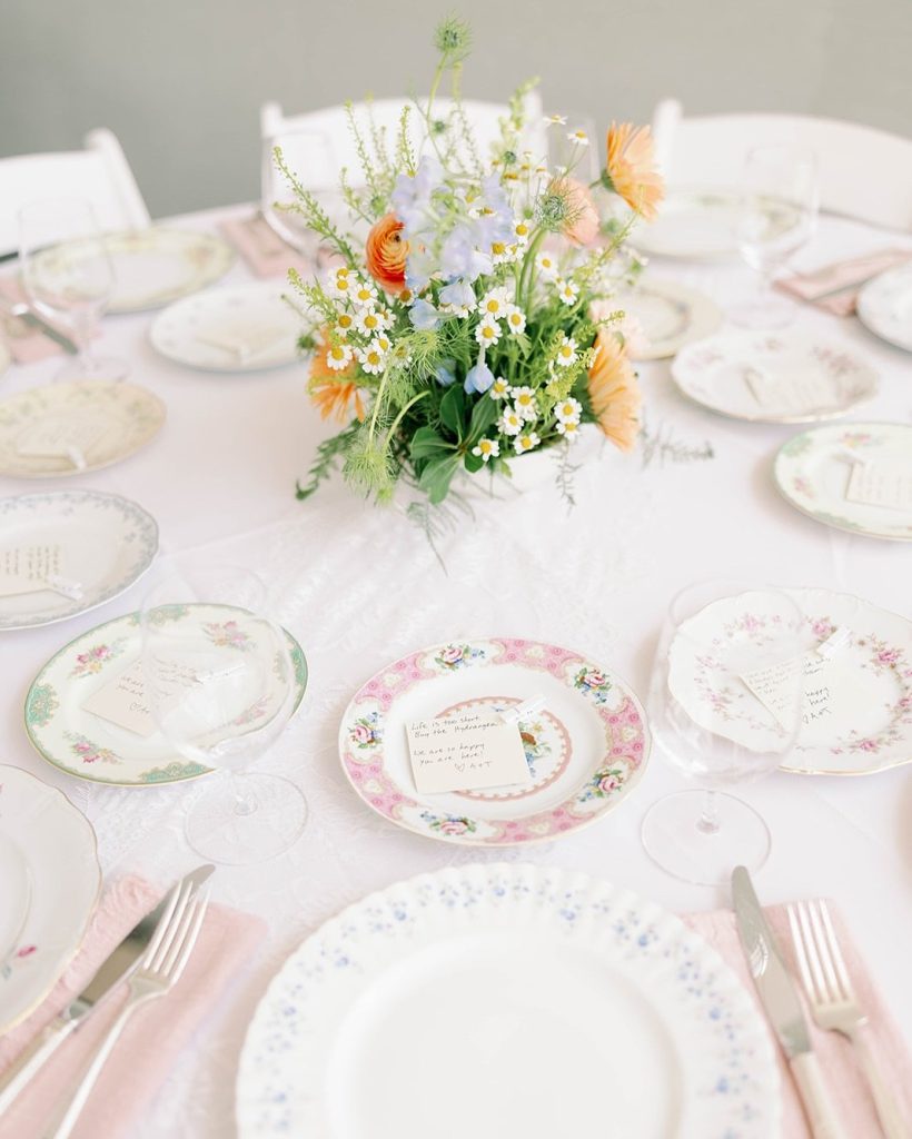 The Vintage Dish added the perfect touch to Temple & Aidan’s summer wedding! Their beautiful collection of mismatched china, silverware, goblets, and vintage-inspired tabletop accessories brings charm and personality to every place setting. Looking to elevate your tablescape? Connect with The Vintage Dish here!