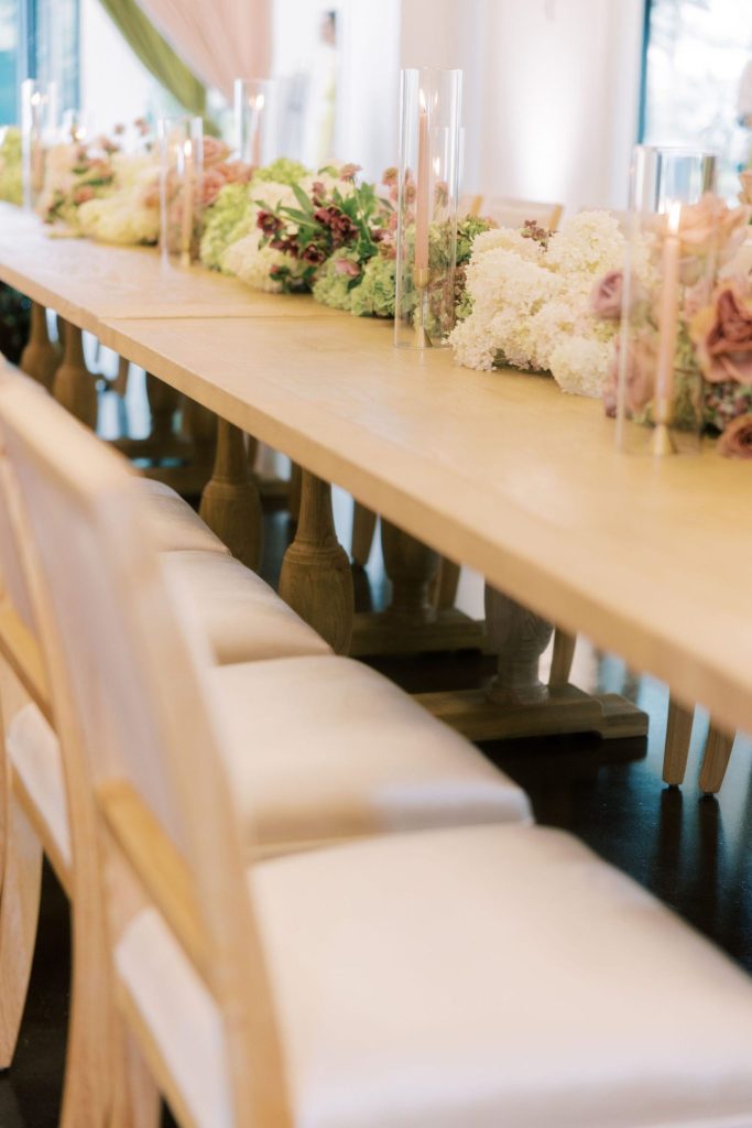 The Peach Orchard set the stage for our celebration with its timeless charm and impeccable service, including a bar featuring fresh, delicious signature cocktails. Premiere Events elevated the ambiance with elegant linens and tables, while Provision Events enhanced the space with unique seating areas, cozy lounge furniture, and an exquisite main table with stylish chairs. Cali & Bloom’s whimsical floral arrangements, full of vibrant colors and intricate details, brought a natural touch indoors.