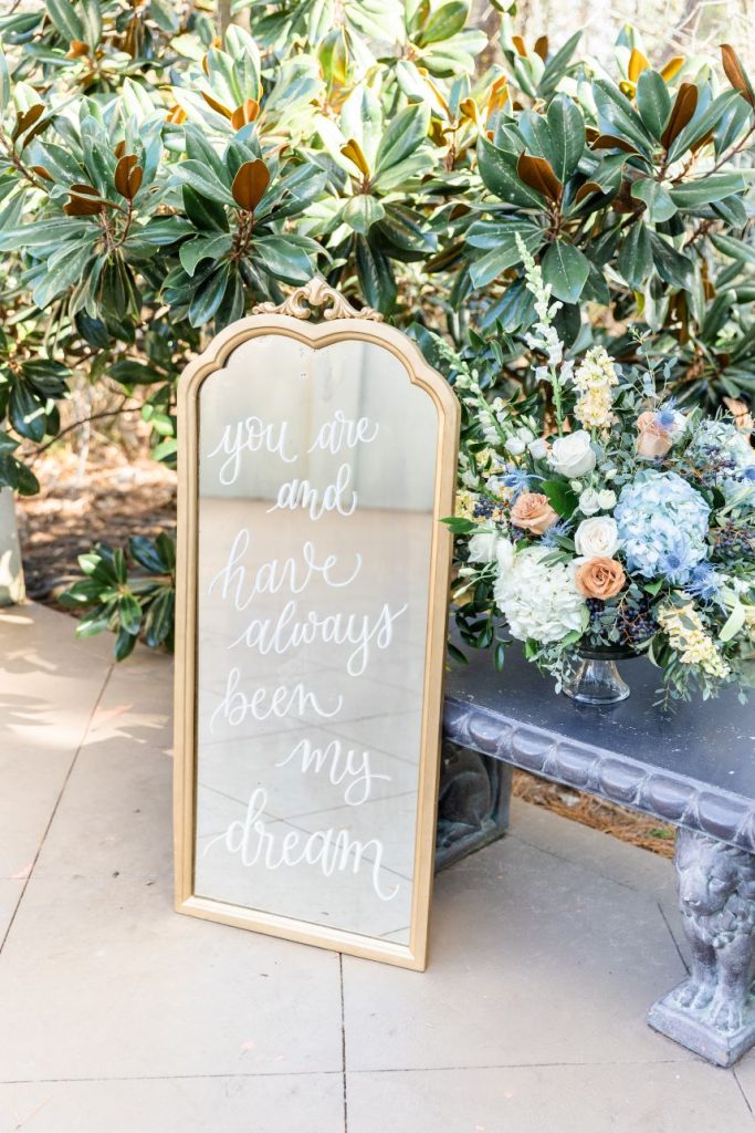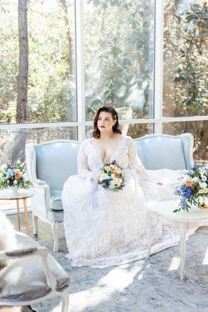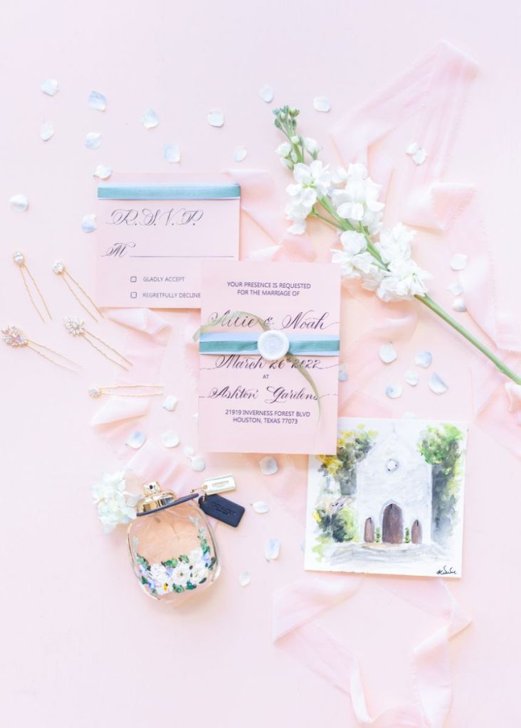 So the story goes, Noah wrote Allie a love letter every single day they were apart in “The Notebook,” which happens to be one of our favorite romantic tearjerkers and the inspiration behind this vintage wedding editorial captured by the talented Brianne Johnson Photography. Abundant romance plays out before our very eyes at Ashton Gardens | North Houston where the whole weddingscape had an air of true magic about it that only love (and cinematic beginnings) can create. We may not have gotten to see it happen in the movie, but we imagine this is essentially what Allie and Noah’s coastal South Carolina wedding would look like! Inspired by the 365 letters he wrote to her, this 1940s styled shoot in sky blue hues is oh-so-fitting for a pair of love birds and includes details like a cheery invitation suite with all the elements of timeless southern prep, plus a hand-lettered love note by Joyful Soul Calligraphy so your words can look just as beautiful as what you have to say. Live wedding painter Brushed Script managed to capture a unique, whimsical view of this vintage wedding editorial inspired by “The Notebook” that can be cherished for generations and passed on when you tell your children the wild story of your star-crossed love.