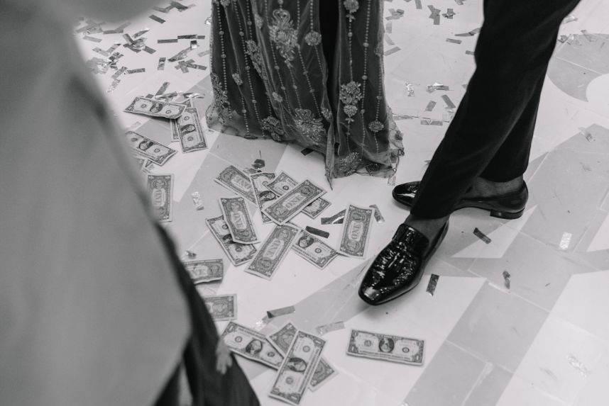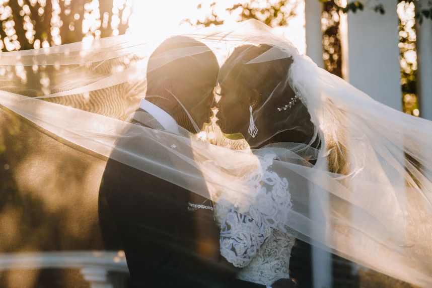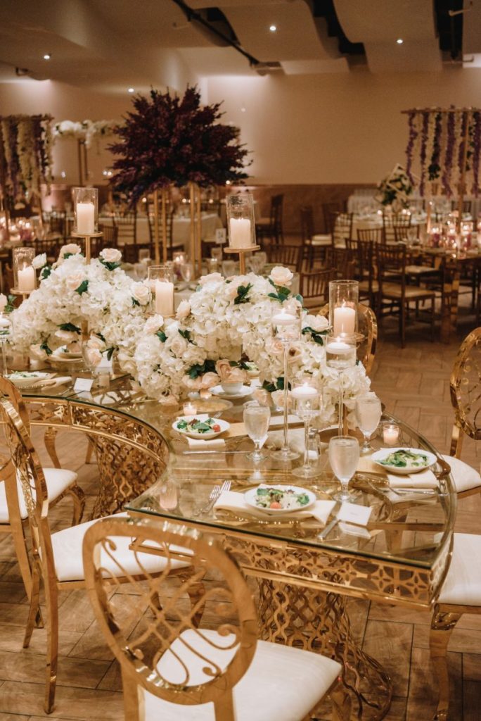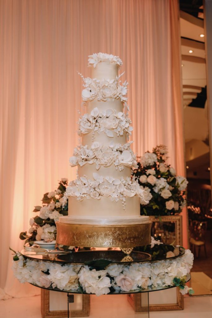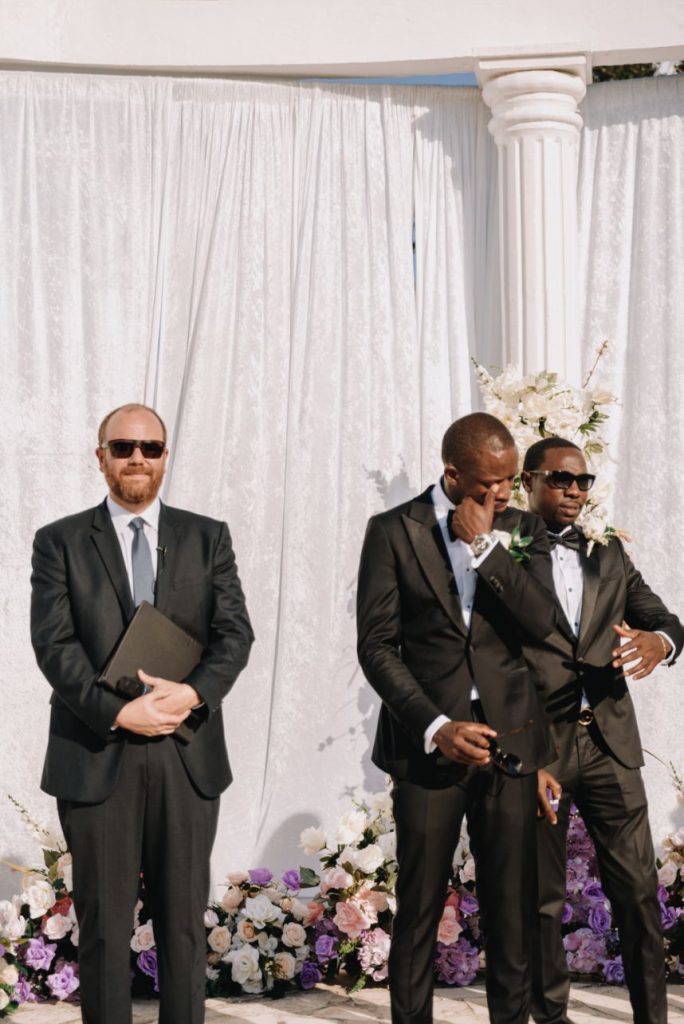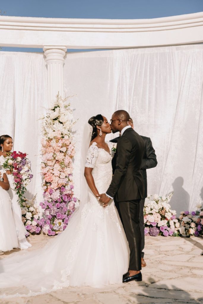 Filled to the brim with so much luxury, Moriam and Brume tied the knot in an elegant Houston wedding ceremony and reception that was elevated in more ways than one. Flowers and greenery cascading from suspended arrangements bring all the romance while twisting and turning glass tablescapes trimmed with gilded filigree make us feel like we’re at a royal wedding! Ivory and gold serve as a timeless color palette for this elegant Houston wedding but we love the royal pop of purple as a subtle accent color behind the altar setup as well as adorning the head reception table. A cream-colored five-tier cake from Cakes by Gina covered in breathtaking edible florals of all kinds surely knocked guests’ socks off, and when it tastes as good as it looks, good luck saving some for later! Taking to the dance floor, the newly married Akpomretas chose to incorporate a money dance for both bride and groom’s Nigerian heritage. The money dance, or money spraying symbolizes a showering of happiness, good fortune, and a display of the guest’s affection for the couple, and it helps to prosper the newlyweds in their marriage together! A luxury-filled affair doesn’t have to mean a boring one and this family knew how to have fun out on Moriam and Brume’s custom wedding dance floor! Read on for a note from the bride about one of her favorite wedding memories – their first look. Cheers to Moriam and Brume!