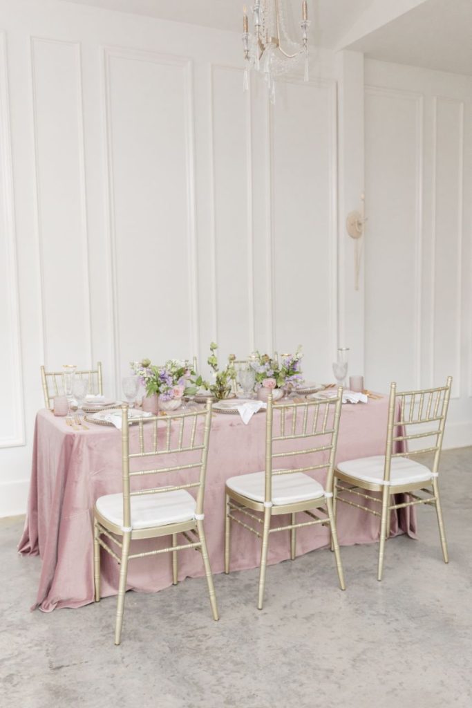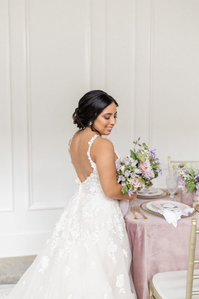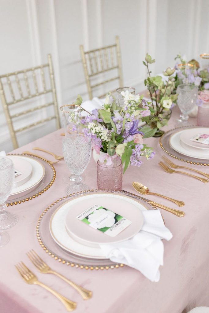 From the photographers: “The shoot was inspired by fresh florals and slower time. A few of our focus words were romantic, elegant, and secret garden with touches from an earlier time period. We wanted to create something that would feel achievable for brides having small, intimate weddings but still creating a luxury experience for their wedding day.”