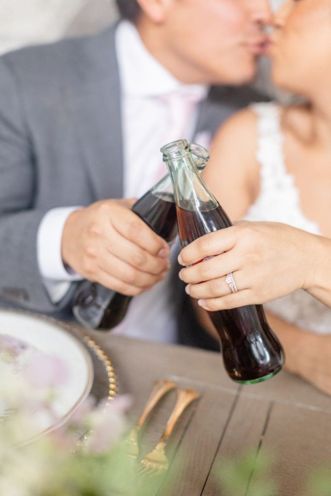 Is it truly a garden wedding if you didn’t provide seeds for your guests to grow one of their own as a place setting and favor duo? We love this idea and all the other intricate details in this pastel garden wedding dream captured by Brandon & Lindsay Lutz Photography in indoor and outdoor scenes. Lush floral installations from Cali and Bloom were overgrown on the edges but strategically placed for a minimal look inside the venue, on tablescapes, and toted in the bride’s basket. Stately fine china, gold flatware and luxe pink velvet linens from Party Time Rentals embellish a captivating reception tablescape topped off with romantic round paperie from Jo’s Paper Kitchen, perfectly plate-sized to announce what’s on the afternoon’s menu. Various seed packets lead guests to their seats where reception dining could take place and this sweet couple could enjoy a Coca-Cola toast to the start of their forever. We’re over the moon about this textural masterpiece by Cake Conspiracy, a whopping five-tiered design where each layer varies from the last. You’ll want to zoom in on that incredible detail in the light and whimsical gallery down below, where all the dreamy garden wedding details can be found. Read on for a note from the photographers about the vision behind the design and styling of this blooming garden wedding inspiration. Cheers!