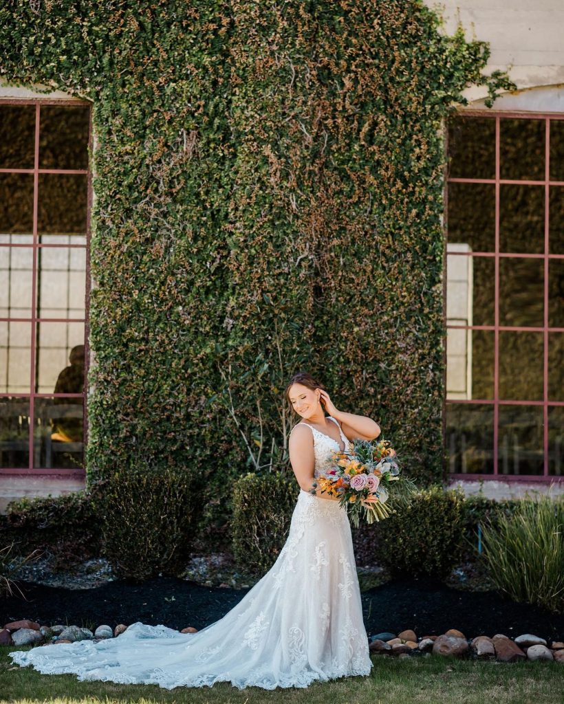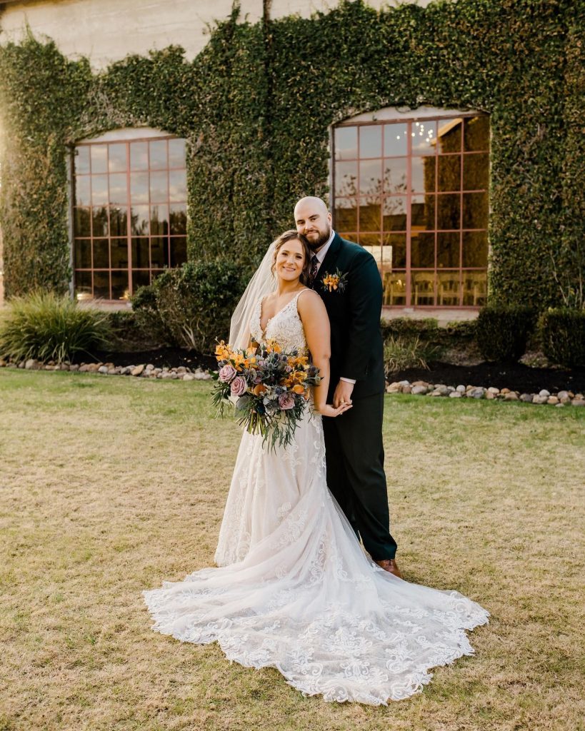 We’re reminiscing on all of the fall colors and the perfect weather autumn brings to Houston through this colorful wedding shot by Rachel Driskell ! ??⁠