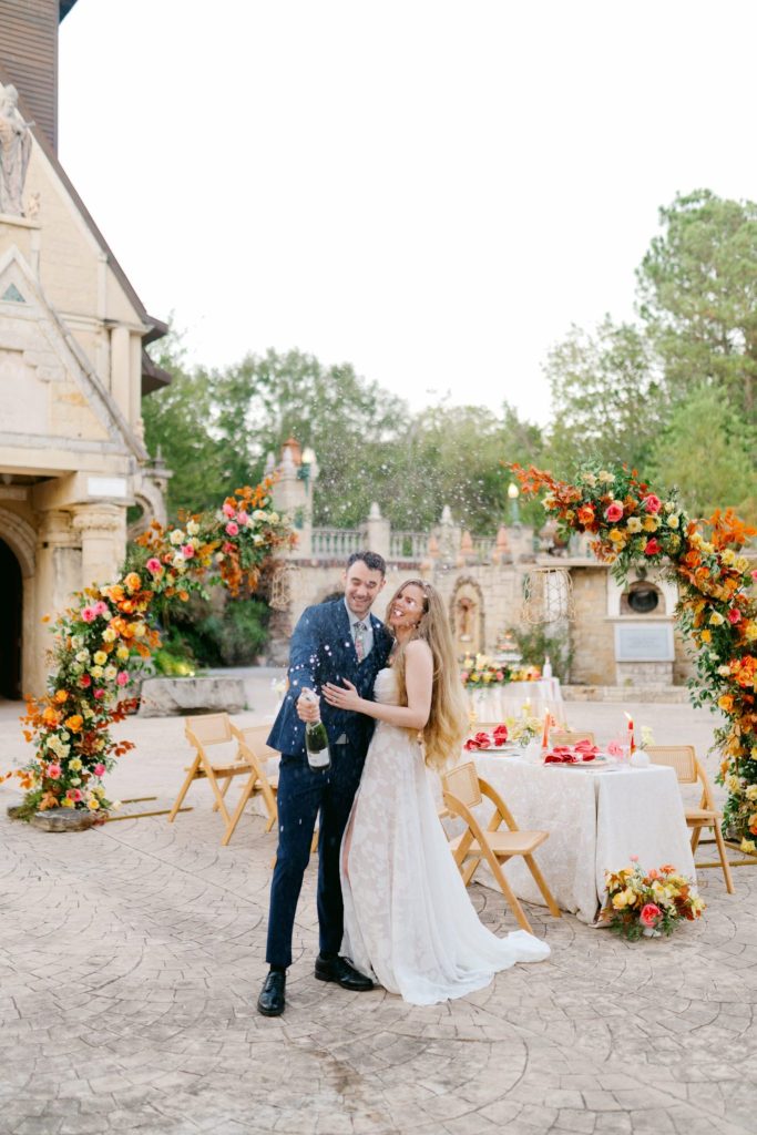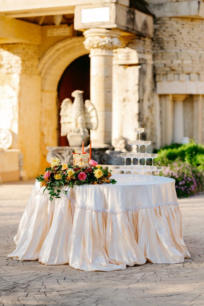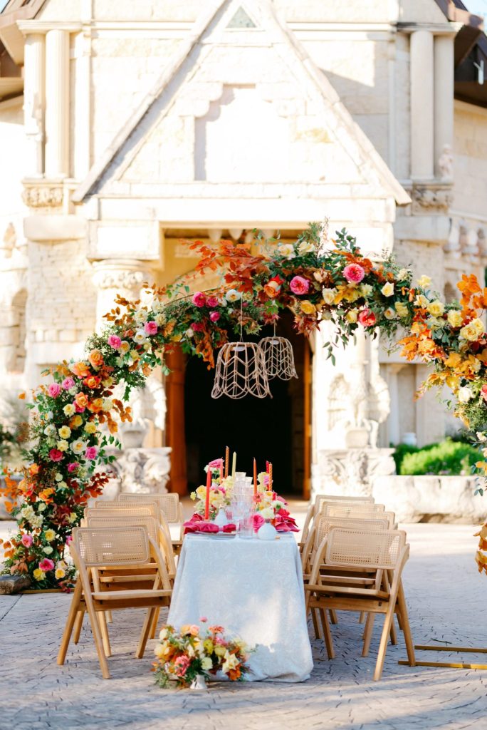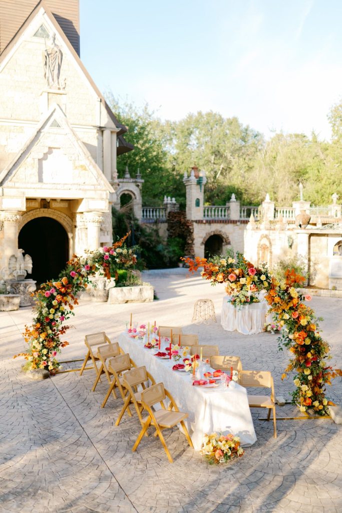 Beneath the Texas skies, an intimate, European-inspired styled shoot came to life in breathtaking style. Katelyn Elaine Creative beautifully captured every detail, highlighting the seamless blend of Southern charm and Mediterranean elegance. Adding to the enchantment, Premiere Events provided carefully curated rentals—from elegant table settings to timeless decor—that completed the scene’s magic. Floral arches overflowing with roses, peonies, and greenery framed the spaces, creating a dreamy, garden-like ambiance.