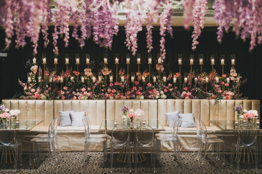 This ballroom wedding was just…WOW! The enchanting florals that engulfed the whole room gave us moody Bridgerton vibes. Glamour was in full effect and the couple could not have been more beautiful on their big day!
