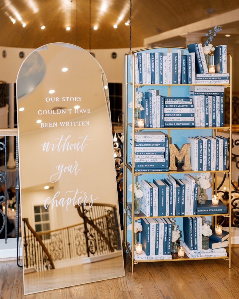 Sutton & Carson’s day felt like stepping into a storybook. Soft French blues, paisley prints, and toile touches brought whimsical elegance to life — but the book-themed seating chart stole our hearts as the sweetest nod to the couple’s shared love of reading. From a fairytale ceremony to a grand getaway in a 1960 Ford Thunderbird, their love story was written to perfection, a seamless flow orchestrated by the exceptional planning of NXT LVL Weddings & Events. Adding to the enchantment, Sutton looked radiant in a bridal dress from Whittington Bridal, perfectly complemented by the whimsical floral artistry of Monica’s Brides & Touch of Glitz Flowers. The celebration was sweetened by a delectable vintage cake from Cakes by Gina, and every cherished moment was beautifully preserved through the videography of CS Wedding Co. Their perfectly orchestrated celebration was a beautiful reflection of their own enchanting love story!