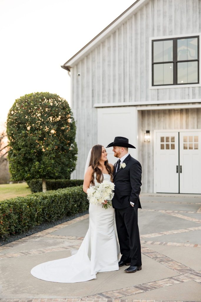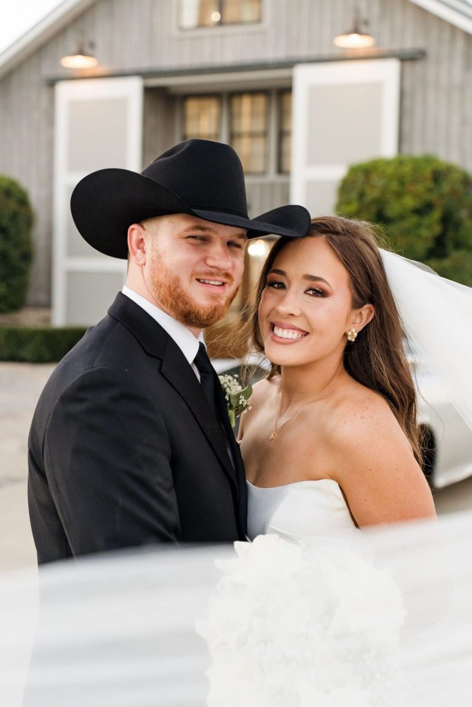 Morgan and Jacob’s wedding at Arrowhead Hill was the perfect blend of timeless elegance and Texas charm. Surrounded by the venue’s serene countryside views and bright white architecture, the couple said “I do” in a space that felt both classic and effortlessly stylish. Their day featured intentional details, like a custom invitation suite from Lyons Paperie and a vintage getaway car, that were all tied together with a touch of western flair.
