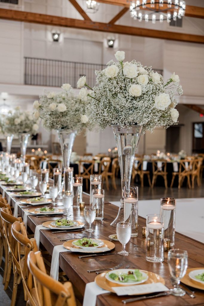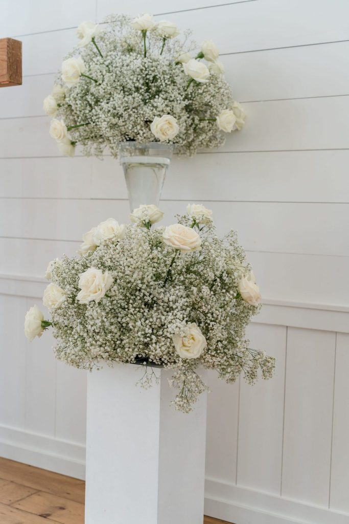 Floral arrangements by The Design Haus filled both the ceremony and reception spaces with lush white roses, baby’s breath, and soft greenery, adding a romantic texture to the day. As the sun set, CoHost Entertainment kept the energy high and the dance floor packed, bringing the perfect end to a day full of love, joy, and unforgettable moments.