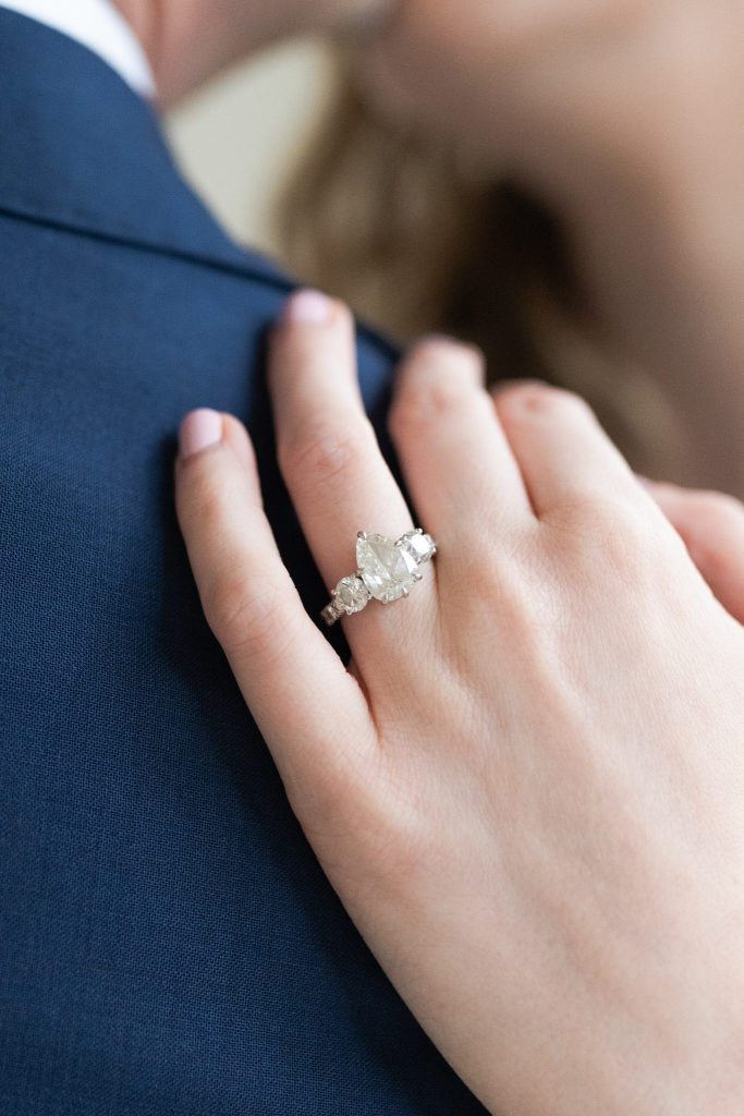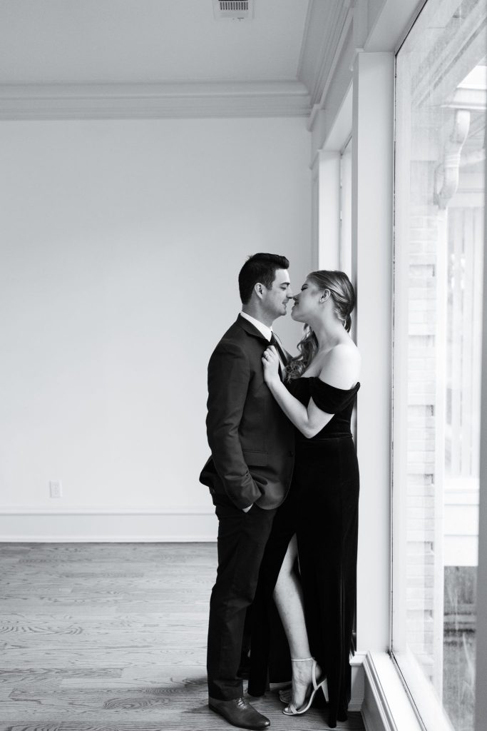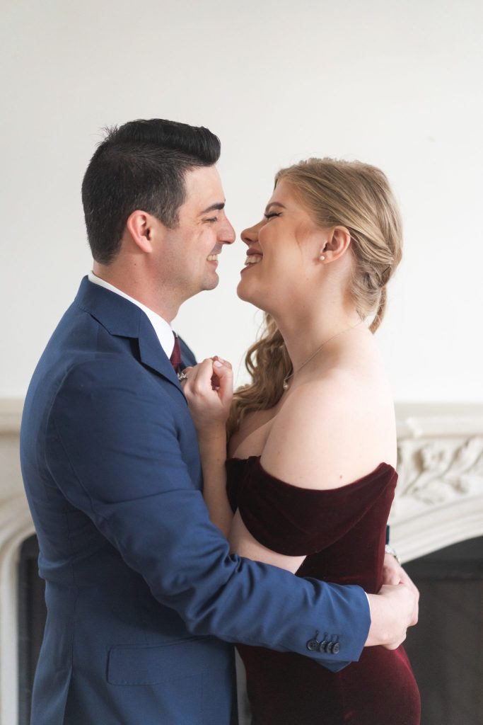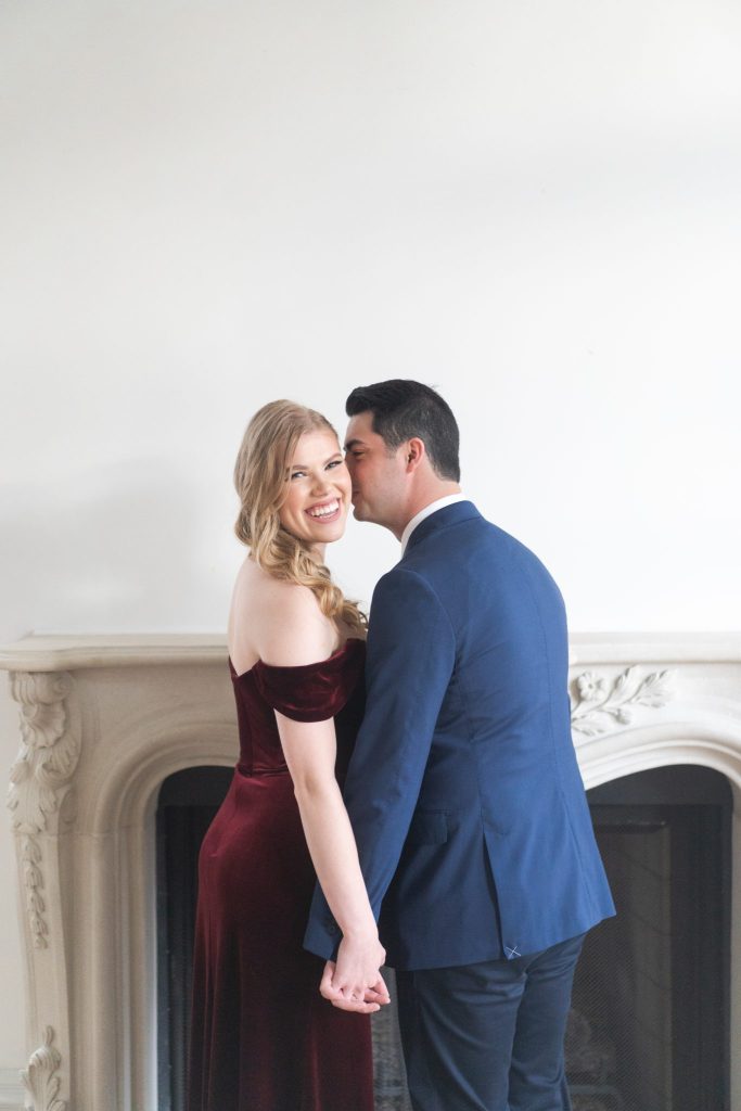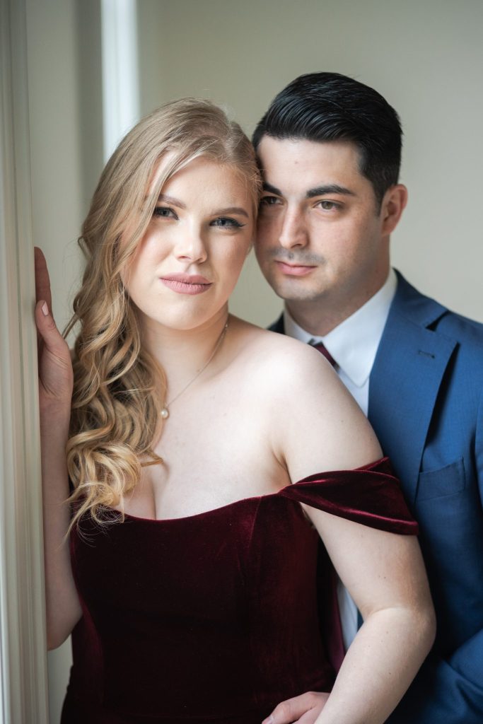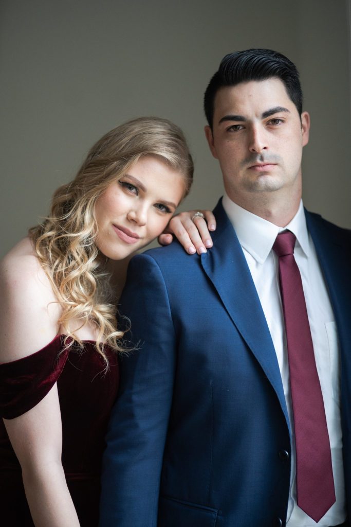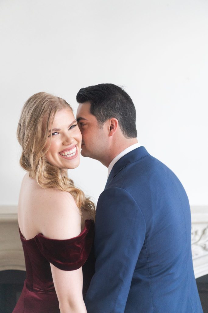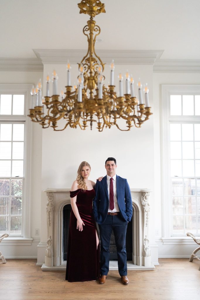 Shades of blue and maroon in Abbie Seay and Blake Brougher’s engagement shoot with Swish & Click Photography is chic and intimate. Swish & Click Photography delivered the most beautiful engagement session that portrayed the love the couple shares beautifully. Abbie and Blake met in high school. However, Blake didn’t know Abbie because she was a few years younger, but Abbie always had a slight crush. During Abbie’s senior year of high school, Blake attended an alumni kickball tournament where Abbie and Blake played on the same team. After the tournament, the two began a friendship, eventually leading them to a date. After a few years of dating, Blake proposed to Abbie in such a romantic way. He told Abbie they had tickets to see the symphony but had a chance to go on a private tour of the Houston Museum of Natural Science before the show. During the tour, while looking at gems, the tour guide brought a small box. Inside the box sat the most beautiful three-stone engagement ring. Blake got down on one knee and proposed to the love of his life.