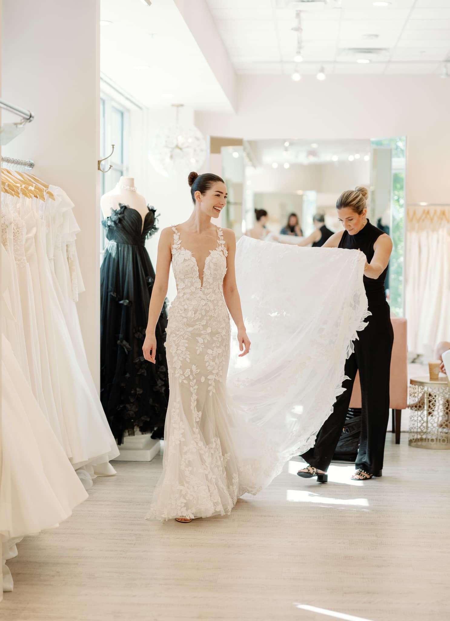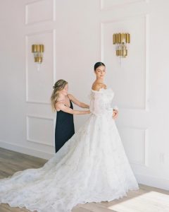 Etoilly Atelier provides personalized bridal styling, from selecting the perfect gown to curating accessories like shoes, jewelry, and veils. Hailey and Kailey’s team also style events surrounding the wedding and offer hands-on assistance on the big day, ensuring the dress, veil, and special items remain flawless and picture-perfect.