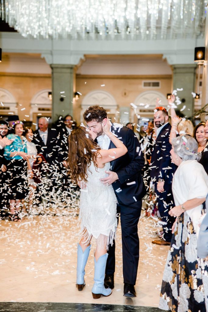 Alyssa and Michael’s wedding at the Crystal Ballroom was beautiful! It all began with stunning invitations from Bering’s, setting the stage for a day filled with special moments. From the pre-ceremony dance party with the bridesmaids to the sweet surprise of Michael’s red roses (a nod to their first date!), the day was filled with special moments for both of them. The ceremony was beautiful, with the bride’s high school music director playing piano as she walked down the aisle to “Edelweiss.” The reception was a blast,  the couple even hopped on stage for a surprise duet of Whitney Houston! It was a day of love, laughter, and unforgettable memories.