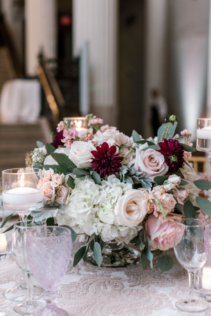 Amanda and Anthony were married the Saturday following Thanksgiving, which is the perfect time for an indoor garden wedding! Their celebration has plenty of seasonal charm and the ambience of the lush florals and candlelight around the historic venue is so romantic. Amanda is truly a gorgeous bride, and her hair and makeup by Sunkissed and Made Up is the perfect finishing touch. Thanks to Josh and Dana Fernandez Photography for capturing all the deets!