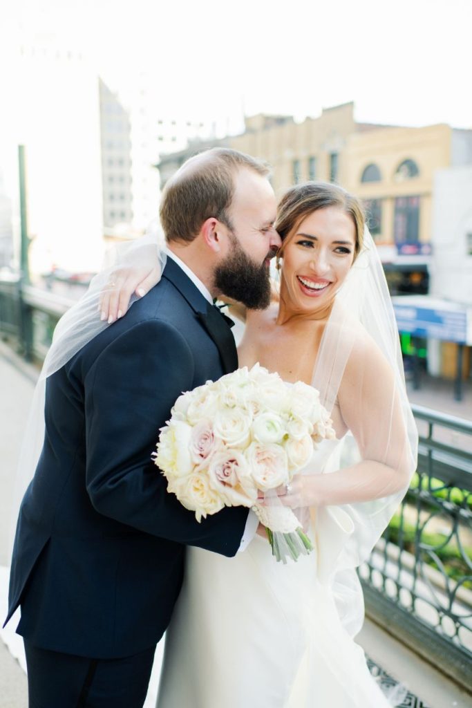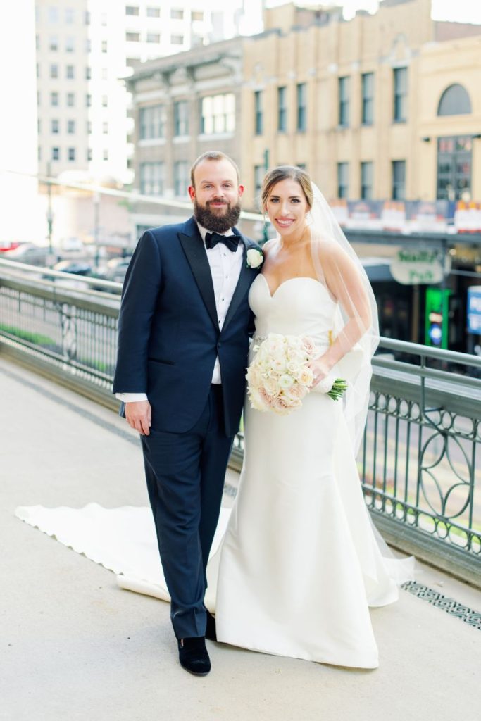 Explore the romantic blush and ivory details in Ashley and Patrick’s light and airy Houston wedding. In addition, Ashley and Patrick’s wedding contained Cajun/New Orleans traditions that we can’t wait to share! The sweet couple shared with us that within four months of dating, Patrick proposed in Breckenridge. While on the mountain, Patrick “fell,” and everyone slowed down. When Ashley turned to him, Patrick got down on one knee and proposed on the side of a beautiful mountain. How gorgeous is that! After a dreamy mountain engagement, the couple went through a pandemic together, planned a wedding, and now are happily married, sharing their gorgeous wedding with us!