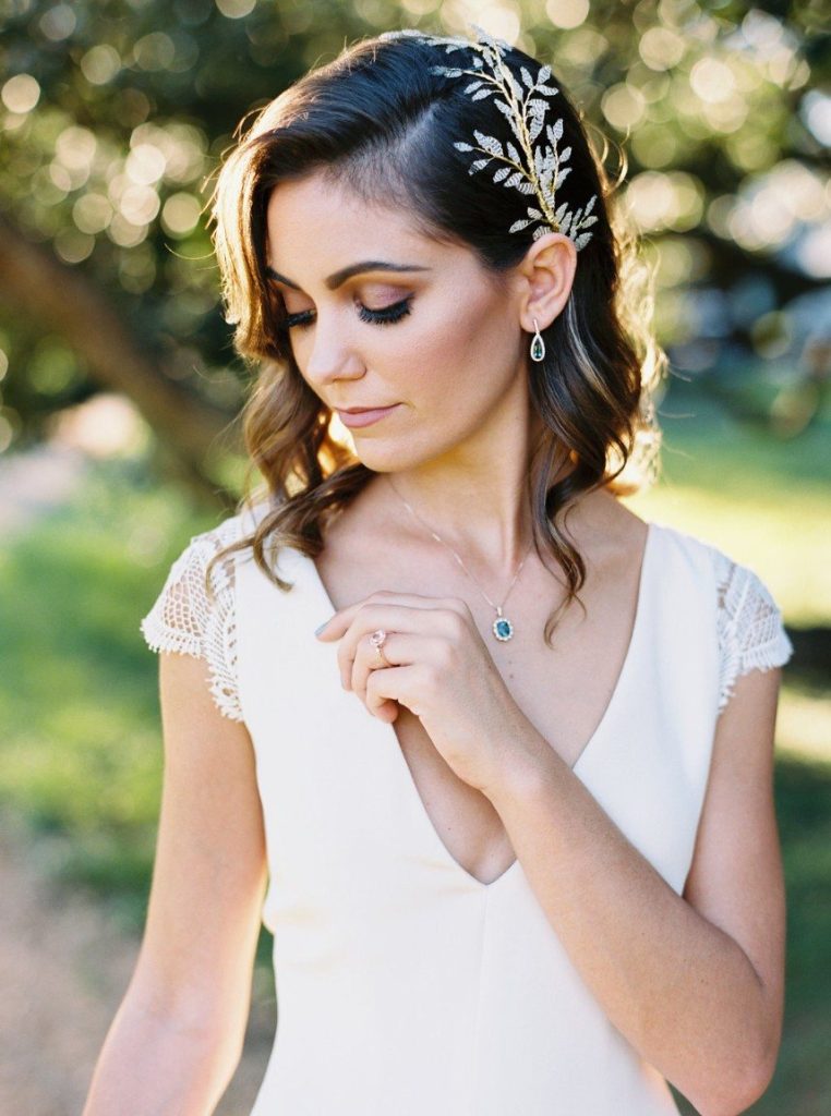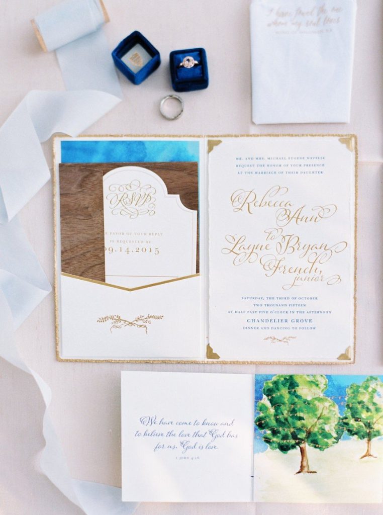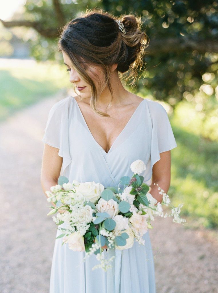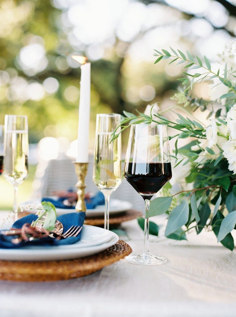 Beautiful azure hues and a laid-back yet sophisticated ambiance give this blue-toned backyard wedding inspiration a dreamy aesthetic we just love! Deep blues contrast with the neutral gray tones of the wicker chairs and linen-covered tablescape, bringing depth and texture to this elegant setup designed by Chancey Charm Weddings. The bride and her maids look effortlessly chic with loose, pulled back hair and clean makeup by Sunkissed and Made Up, complete with fun hairpieces and jewels in blue. The bride’s gown from Casa de Novia, with a plunging neckline and darling cap sleeves, is perfect for this upscale backyard soirée. From the bright and colorful stationery to the cerulean linens beneath swanky gold silverware and blankets on the chairs, this blue-toned backyard scene inspires us to consider an intimate, inviting celebration with the comforts of home elevated with dreamy tones and sophisticated textures. Happy scrolling!