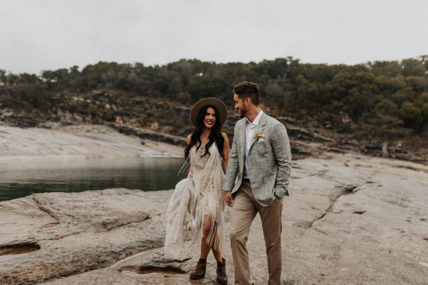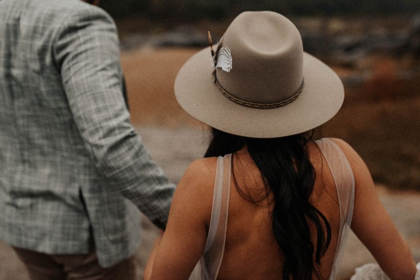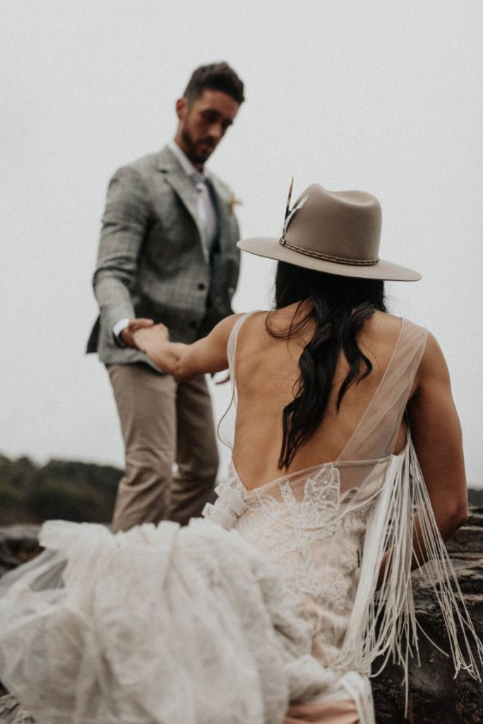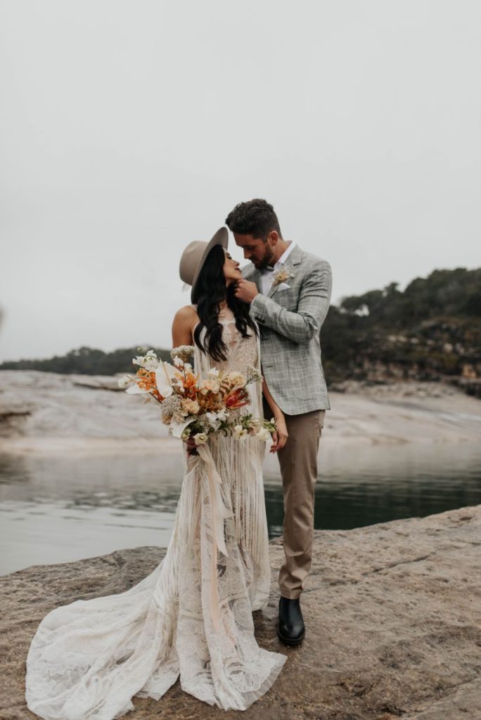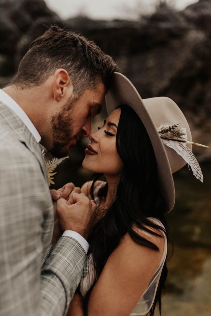 If you’ve been contemplating whether to postpone or go through with your nuptial plans on the same schedule as before, this wanderlust infused elopement inspiration may make your decision a little easier to make! Love in the time of COVID means your wedding will have to be small and/or socially distanced anyway, so why not make it both? Grab your lover, run away into the wild unknown, and elope. The wilderness awaits! Taryn Lynn Photography managed to capture the very essence of wanderlust-filled love and the rush of adventuring with your partner in this stunning styled shoot, and these photos are so full of real passion. This model looks fit for the aisle, the runway or the great outdoors in a free-spirited bridal gown from Unbridaled pairing perfectly with the bohemian vibes carried out by her adorable hat and the rest of the mood in this shoot. There are few things more romantic than the waterside, and scenic rocks and coves make these intimate scenes feel moody in the best way! This wanderlust infused elopement inspiration definitely has us thinking twice about our options in the time of corona! Read on for a note from the photographer about the shoot’s location as well as her recommendations for other local areas. Cheers!
