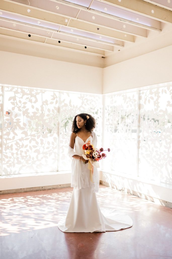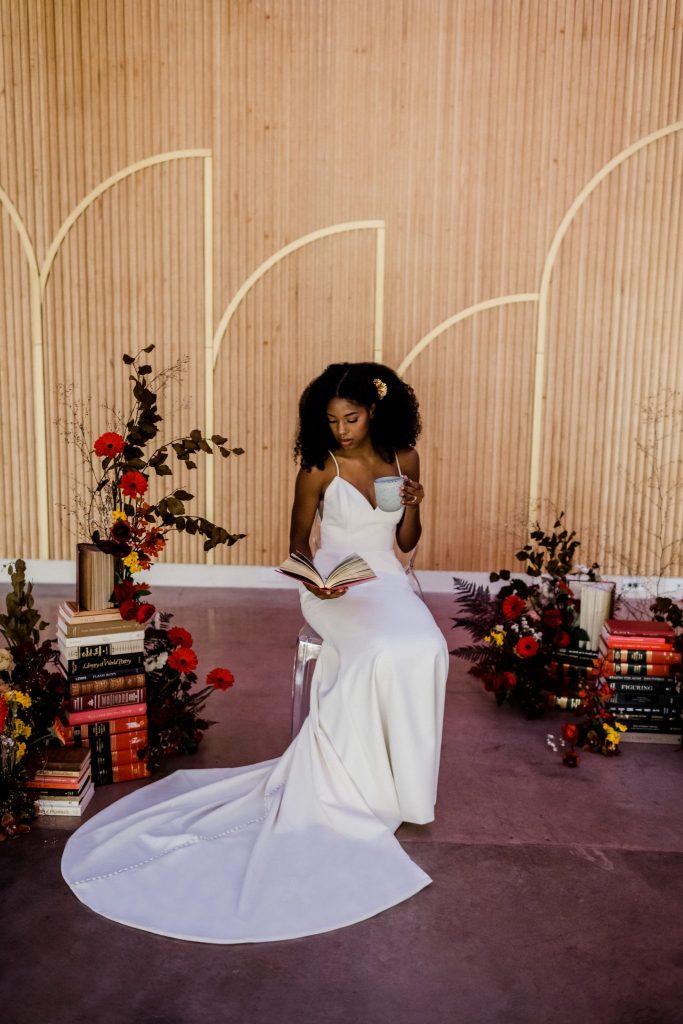 Finally, true romantics like Kathleen dream of their perfect gown and bridal look. We’re here to give you a glimpse of what Kathleen might have worn for her big day. Tease HTX created a peach/sienna-toned light smokey eye to complement the model’s beautiful skin. Tease HTX kept the makeup minimal and enhanced the model’s natural curls to pair perfectly with the Evoke: The Bridal Experience gown. The simple gown, which allowed the daisies to stand out, is a look that we know Kathleen would admire! The ever-so-talented Rachel Driskell Photography captured all the magical moments in this book shop romance editorialKeep scrolling to see all the You’ve Got Mail details… the only thing missing is a “bouquet of newly sharpened pencils.” Cheers!