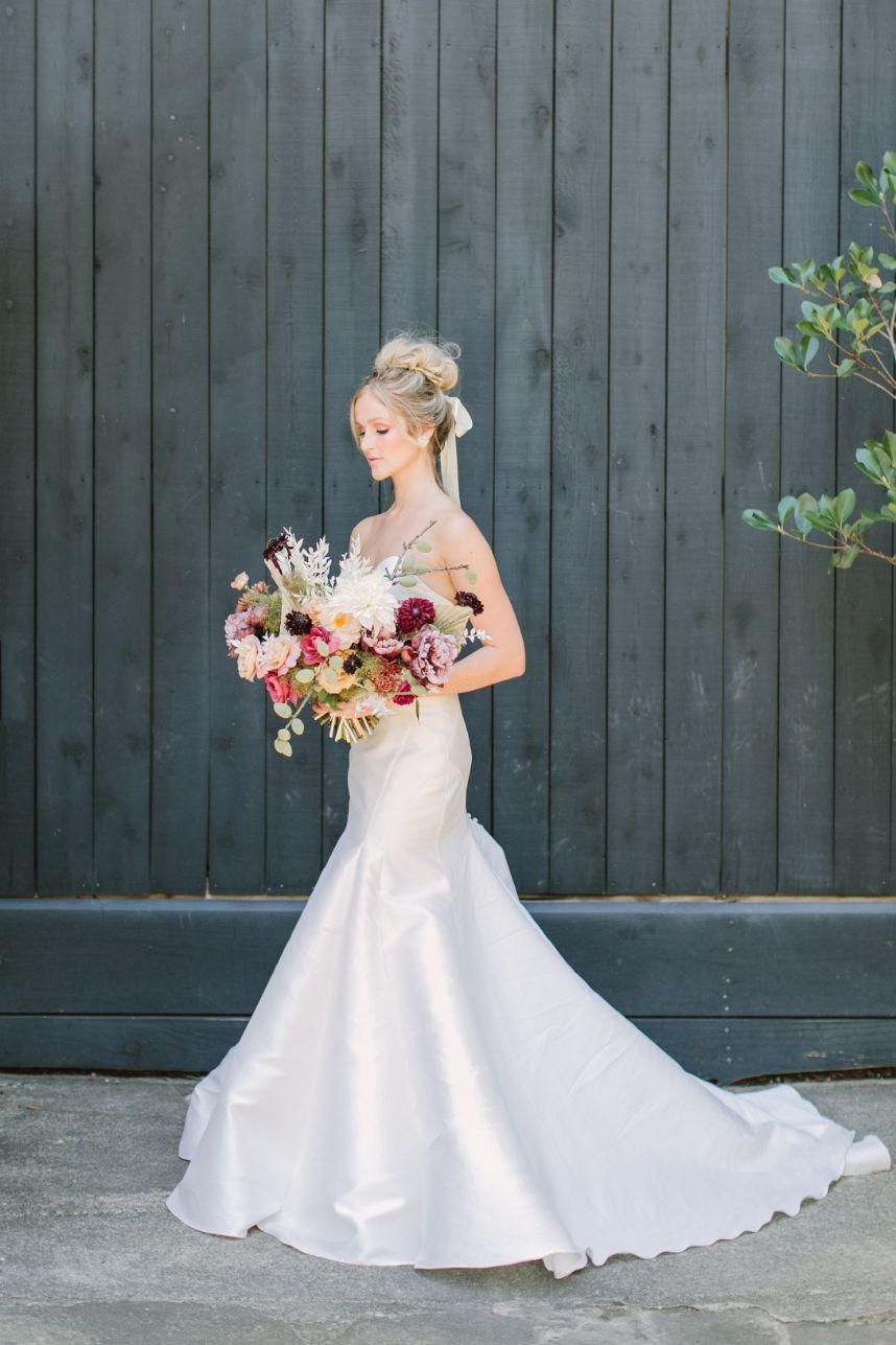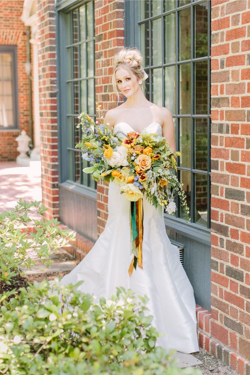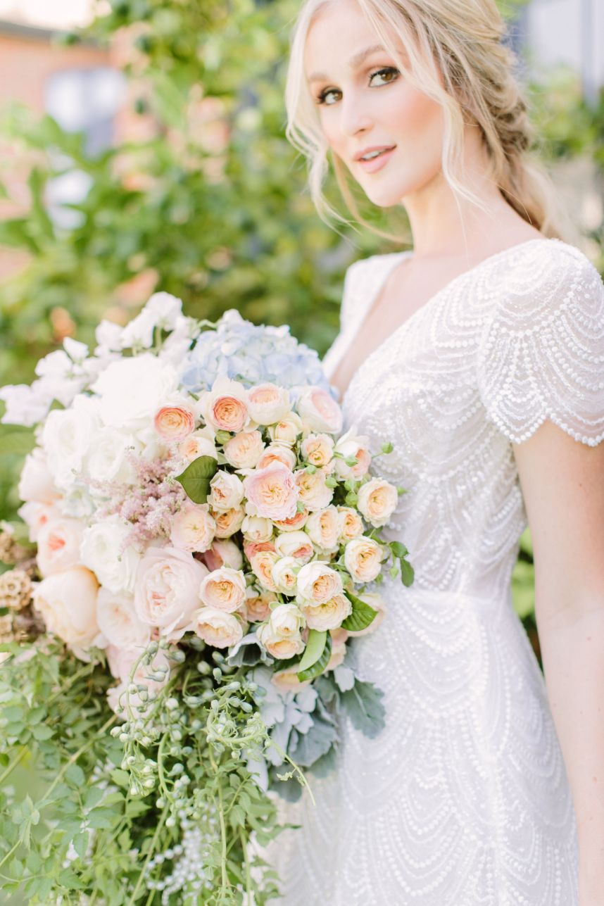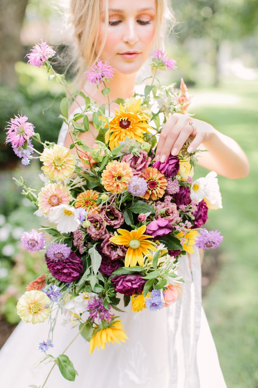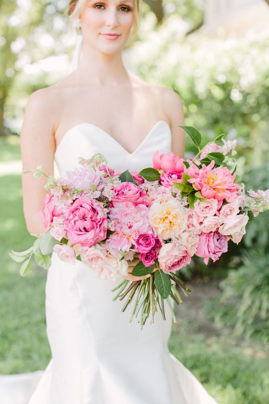 Okay, brides: ready to swoon? Take a look at these bountiful blooms – overflowing bouquets from Houston’s best florists! We spent the most beautiful day at Lanson B. Jones & Company‘s private garden with some of the top floral designers in the city, watching them create incredible freeform bouquets and cascading installations each in their own unique style. No matter the types of florals you’re drawn to, you’ll find inspiration in this collection, no doubt! To show off these amazing and bountiful blooms, our model paired each bouquet with a lovely gown from Mia Bridal Couture and a different hair and makeup style from Sunkissed and Made Up. Mustard Seed Photography captured all the bouquets in her signature light, bright and colorful style, showing off each flower just perfectly. We hope you love these blooms as much as we do! Cheers!