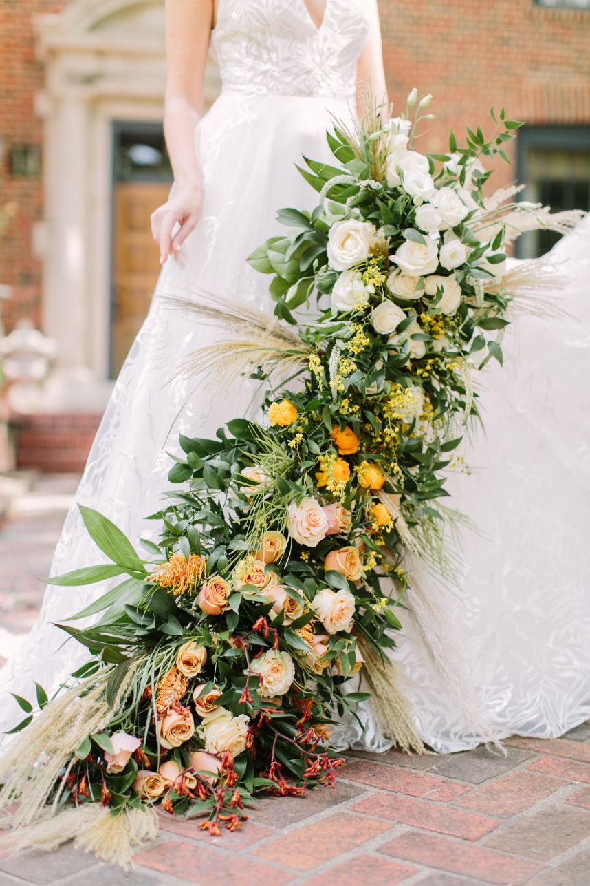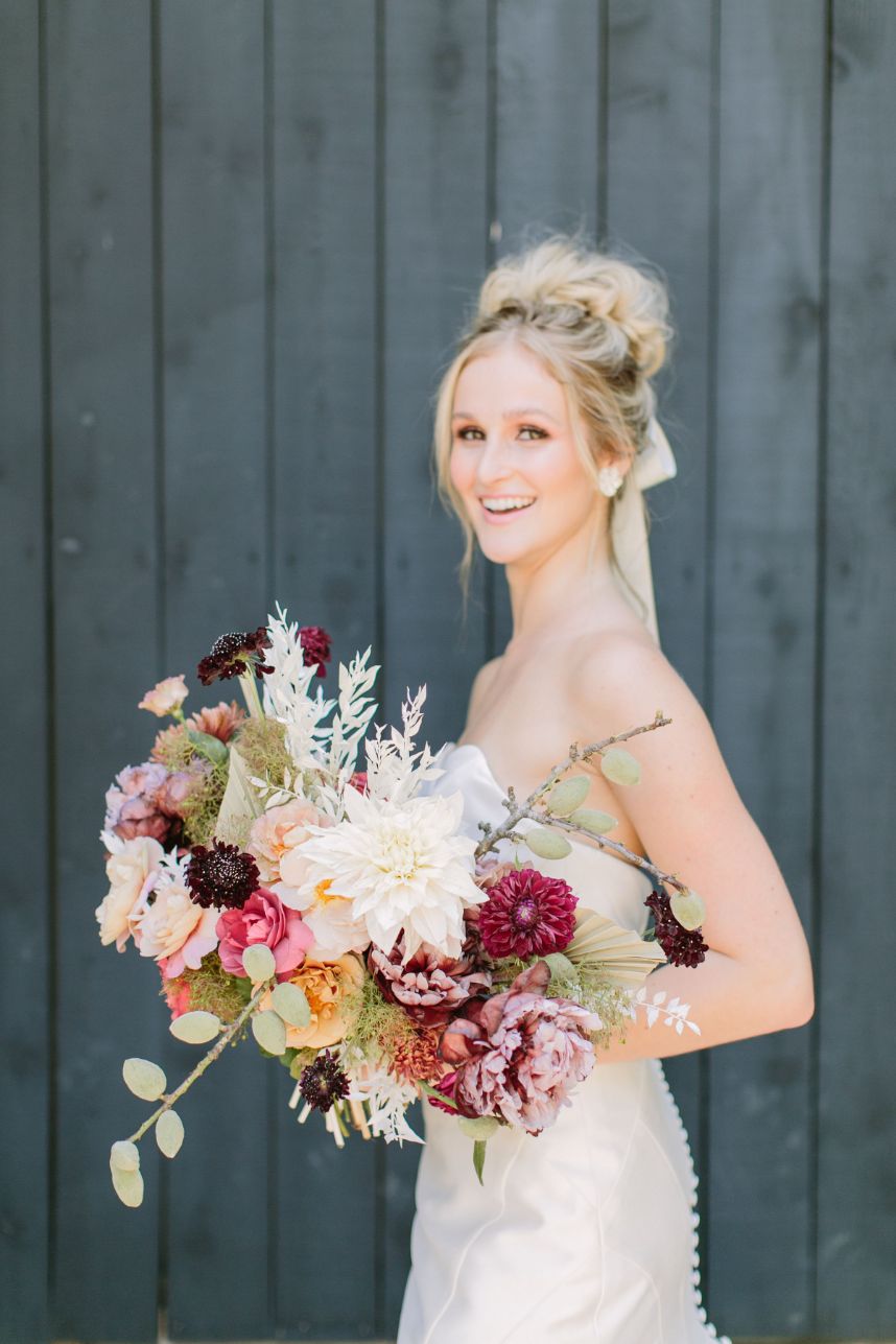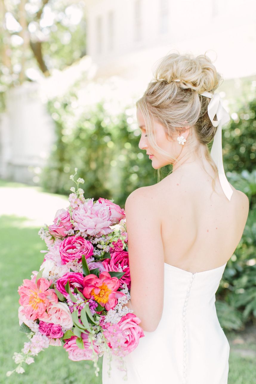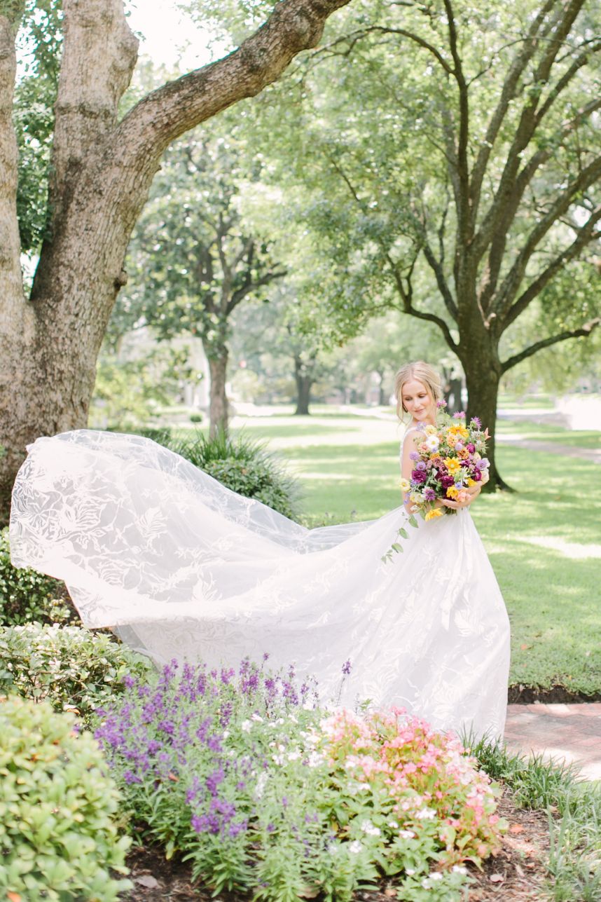 Okay, brides: ready to swoon? Take a look at these bountiful blooms – overflowing bouquets from Houston’s best florists! We spent the most beautiful day at Lanson B. Jones & Company‘s private garden with some of the top floral designers in the city, watching them create incredible freeform bouquets and cascading installations each in their own unique style. No matter the types of florals you’re drawn to, you’ll find inspiration in this collection, no doubt! To show off these amazing and bountiful blooms, our model paired each bouquet with a lovely gown from Mia Bridal Couture and a different hair and makeup style from Sunkissed and Made Up. Mustard Seed Photography captured all the bouquets in her signature light, bright and colorful style, showing off each flower just perfectly. We hope you love these blooms as much as we do! Cheers!