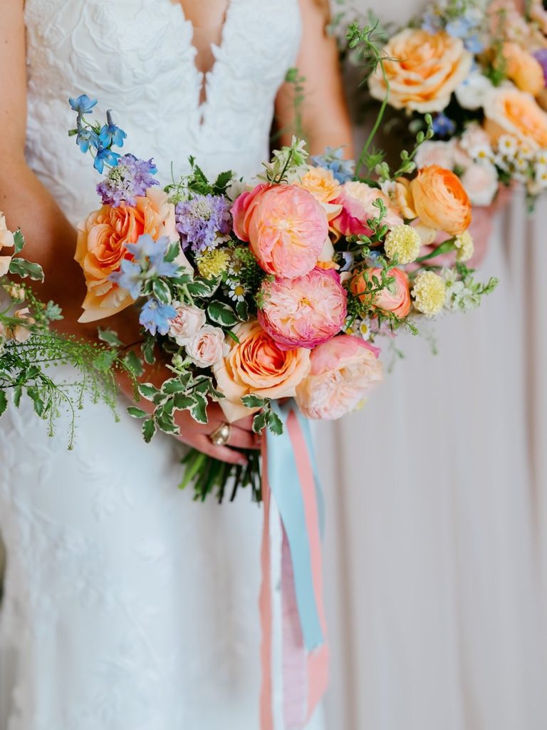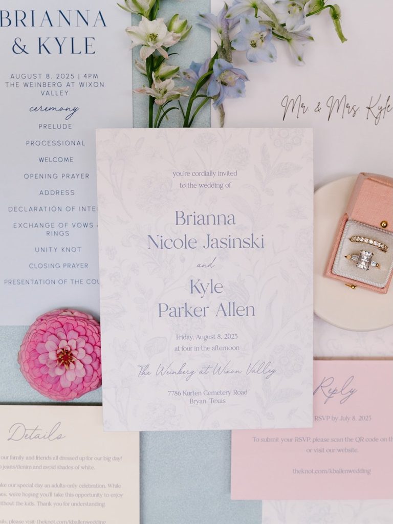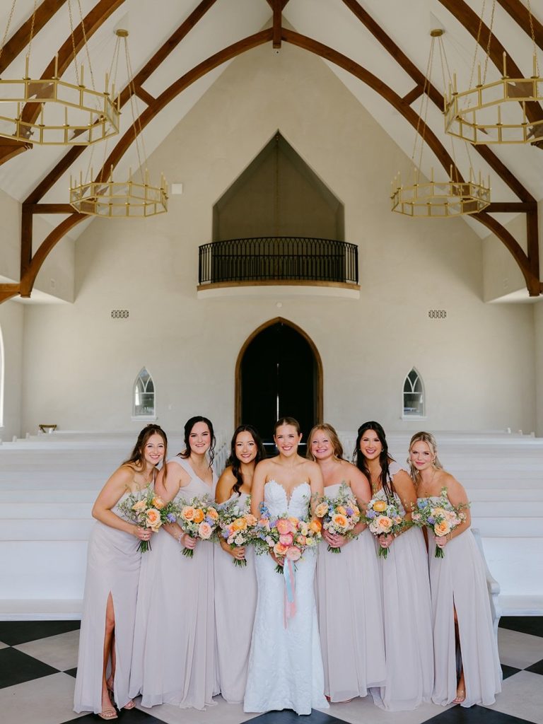 Brianna & Kyle’s wedding day was effortlessly romantic and filled with soft peach, blue, and lavender florals that set the tone alongside timeless details and a light-filled ceremony space. Their vows were beautifully officiated by Marry Me Brandon and captured so thoughtfully by Katelyn Elaine Creative. And once the party started, custom shirts hit the dance floor!