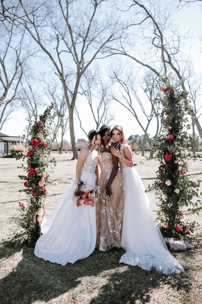 The other most important part of this shoot was the emphasis on the uniqueness of every couple we encounter as wedding vendors. We had an amazing same-sex female couple set to model in the shoot, but they unfortunately had to back out after the winter storm. Luckily Evita, Mackena, and Amanda had us believing they were all trained supermodels! They were the most beautiful mixed representation we could ask for!”