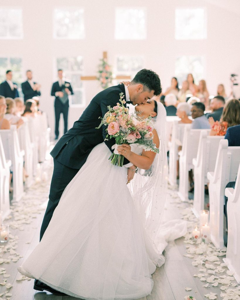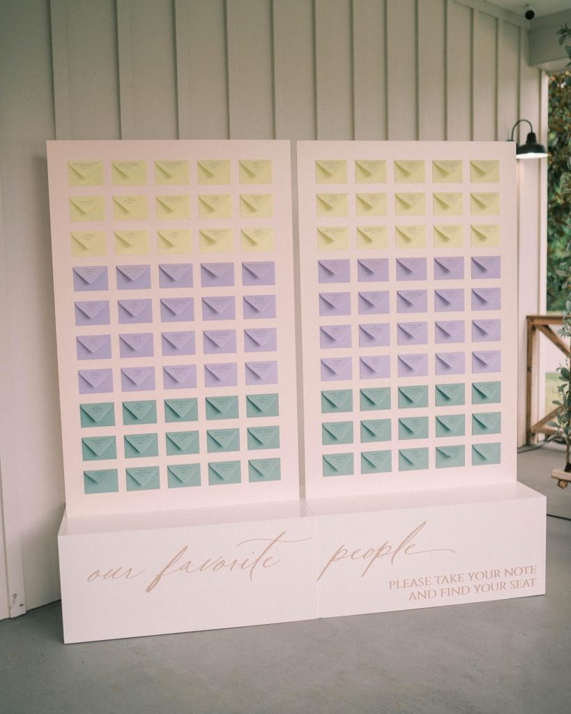A touch of class in every detail at Madison & Samuel’s summer wedding! For the seating chart, they hand-wrote notes to each of their guests, thanking them for coming to their wedding and telling them what they meant to them. See more sweet details and stunning floral inspo below!