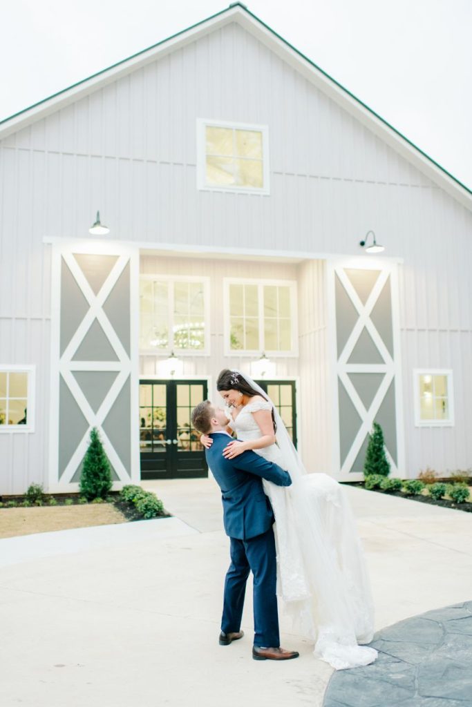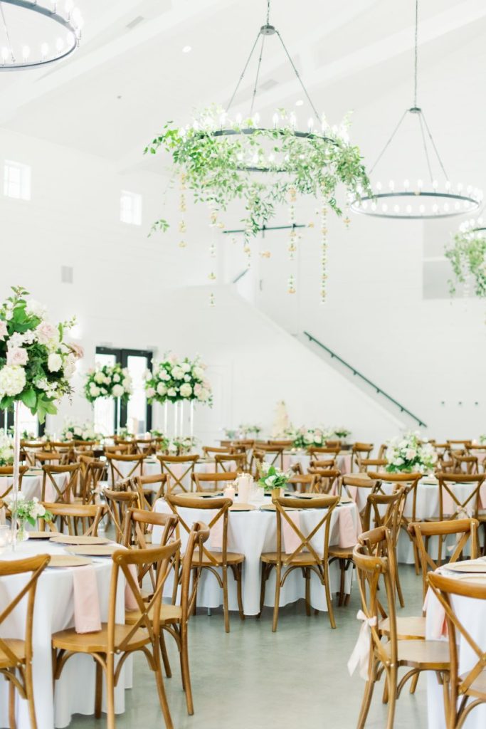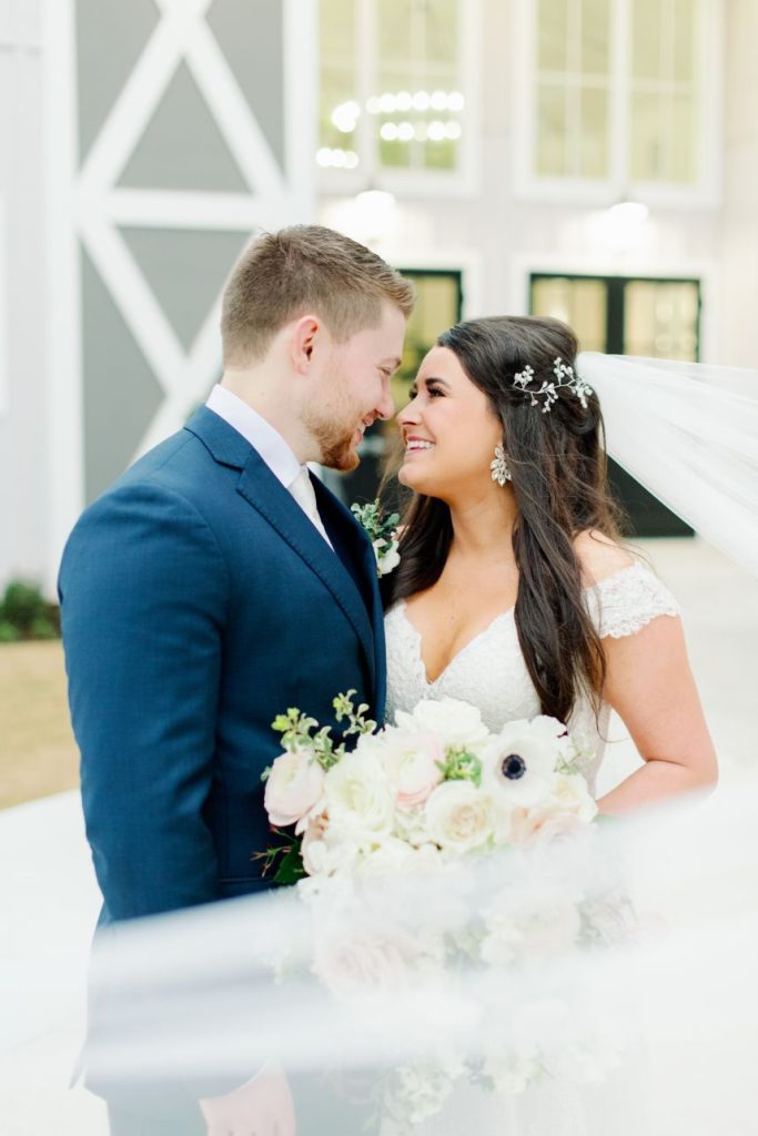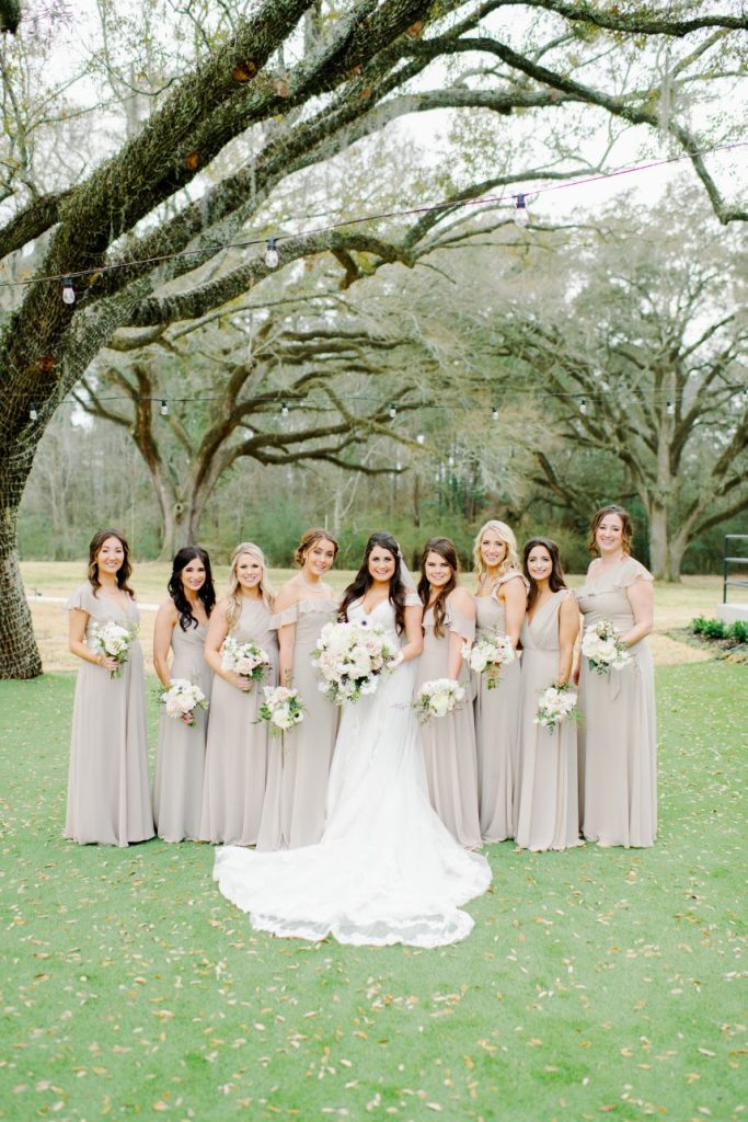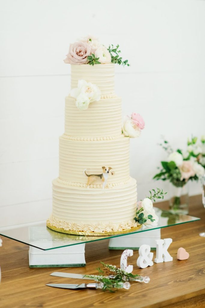 Kayla and Conner’s dream wedding came in the form of this modern farmhouse affair. In a stately palette of champagne, blush, and classic navy, their long-time romance came to fruition in the most flawless way possible. Kati Hewitt Photography was there for it all in their journey, starting with their sweet engagement photos that included Kayla and Connor’s pup Dixie. Their fur baby went on to be in Kayla’s bridal session as well as being the dog of honor in this wedding. How precious! Before the big day, bridesmaids were treated to a luncheon at The Woodlands Country Club where they celebrated their bride-to-be. The morning started with Kayla and her girls getting glammed up by the hair and makeup pros at Butter Artistry while clad in matching pajamas in the bridal suite. After getting into her stunning off-the-shoulder gown and accessories from Brickhouse Bridal, Kayla brought her bridesmaids out to the patio where she caught their adorable reactions just before sharing a teary-eyed first look with her dad. Then, she walked down the aisle to the start of her forever with Connor! Their ceremony was filled with tons of memories that everyone will cherish forever. From Connor’s reaction when the chapel doors opened to the pair walking out as husband and wife, each moment melts our hearts over and over again! Mr. and Mrs. Boster popped a bottle of champagne to celebrate and made their grand entrance into the reception. It’s safe to say the party got started at the end of the first dance when Connor picked up Kayla and spun her around to the tune of Royal Dukes Band and their jumping live music! A full evening of festivities and fun made it a night they will never forget. Read on for a note from the bride about one of the biggest things she learned while planning this modern farmhouse wedding. Cheers to the Bosters!