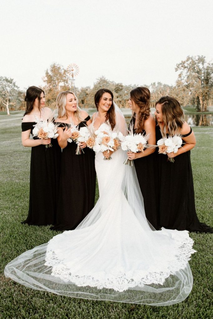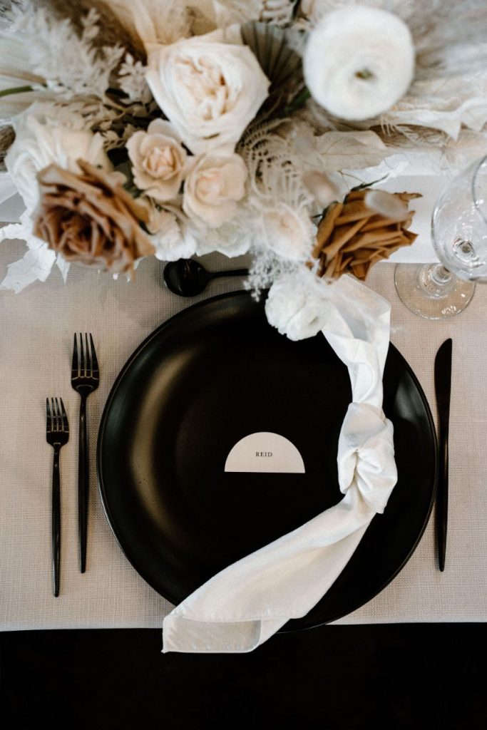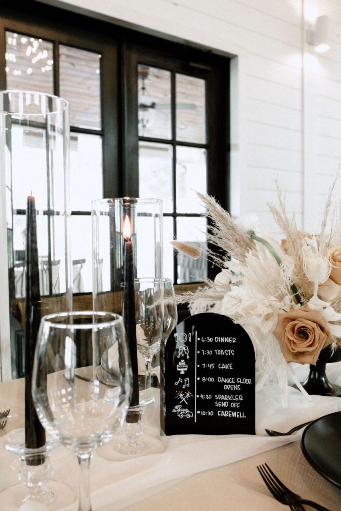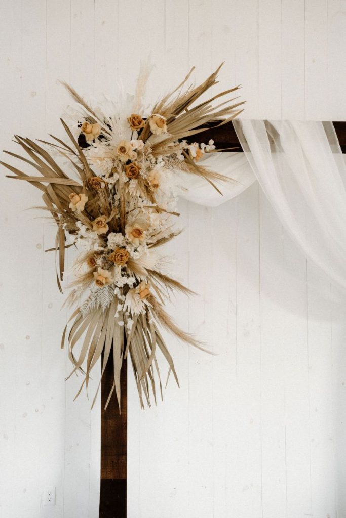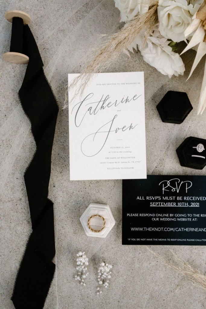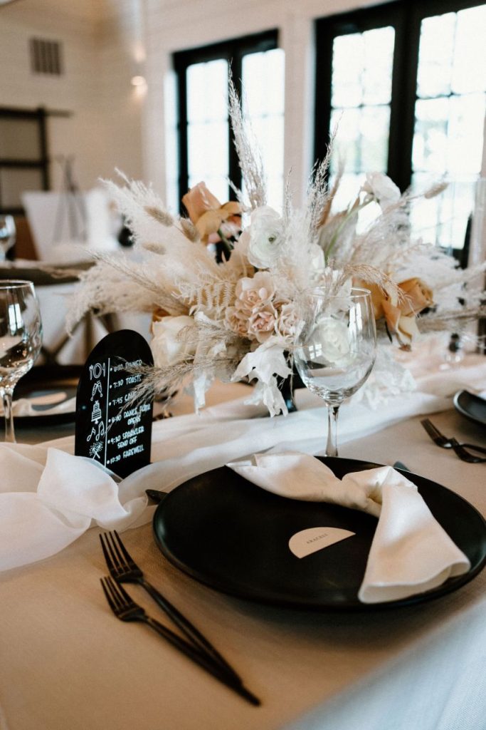 Catherine and Sven’s classic black and white color palette with bohemian floral arrangements created the most beautiful modern boho wedding. The couple met back in 2019 when Catherine began a new job. On the first day, Catherine met Sven. Catherine felt instantly drawn to him, so she decided to make a move by sending him a meme. The meme defiantly caught Sven’s attention because he asked Catherine on a date, and the two have been together ever since. On Catherine’s birthday in 2020, Sven proposed in such a creative way. The two celebrated Catherine’s birthday at a DIY workshop where you create custom signage and home decor. While Catherine worked hard on her project, Sven was doing his own special project behind the scenes. At the end of the night, the owners wanted to take a picture of everyone’s creations. While Catherine waited she turned around to see Sven down on one knee with a custom-made sign. The sign read, “Will you forever be my always?”. Catherine’s eyes filled with tears as she said “yes,” to forever while also gaining a special keepsake for their home.