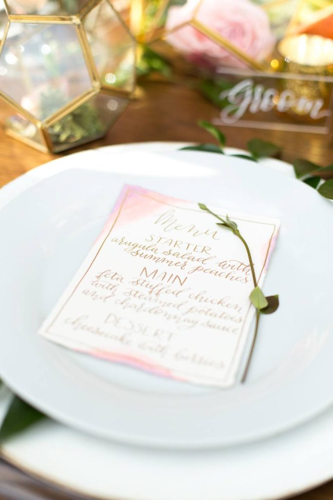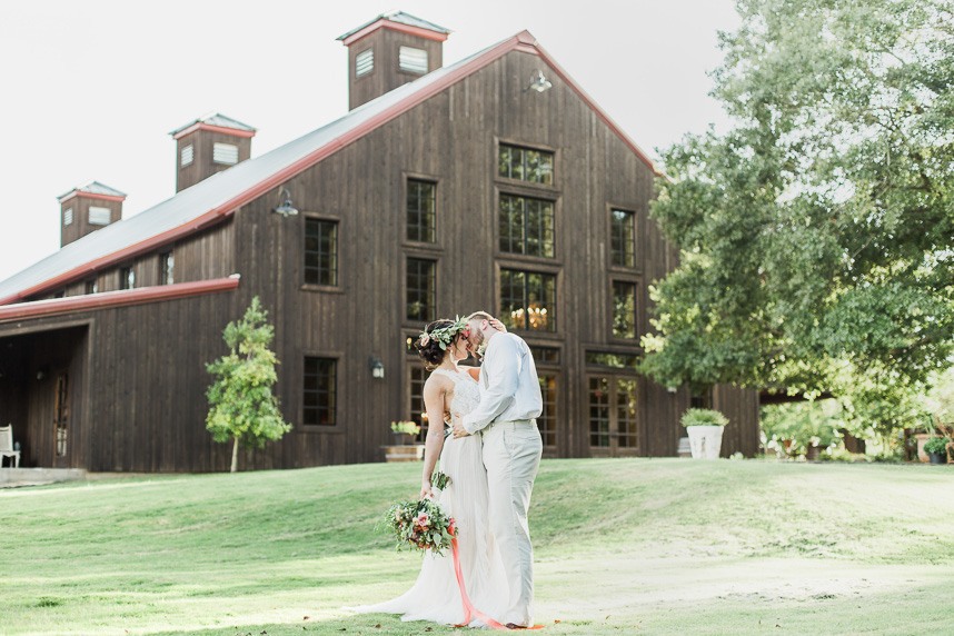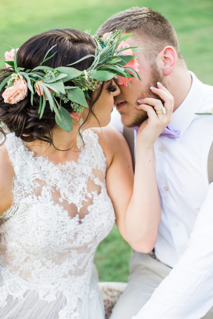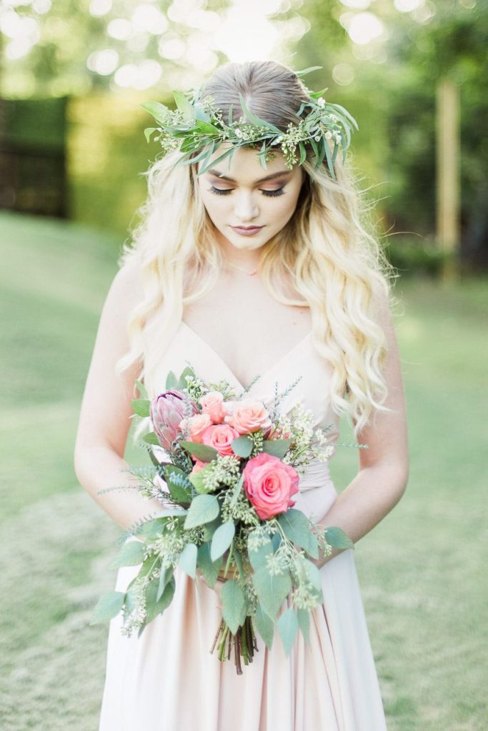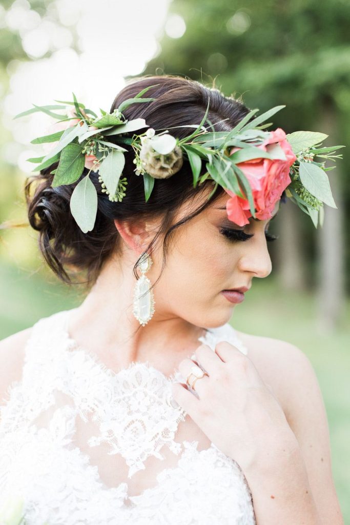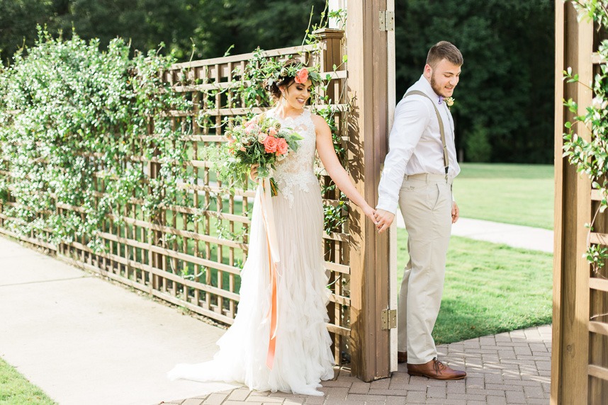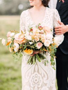 This charming citrus-inspired styled shoot is everything a lighthearted springtime celebration should be: totally fresh and fun! Planned by Feather Forest Weddings and captured by Kailyn Daneé Photography at Conroe’s Carriage House, the talented team of vendors used grapefruits as the decor and inspiration around which they built the entire styled shoot! Bright and cheerful hues of peach and coral popped against blush-toned neutrals and touches of gold, while vibrant florals with fruity blooms adorned everything from the head table to the vintage vanity holding the cake, and even worked as flower crowns for the bride and her maids! Hand-painted macarons, metallic stationery and place settings calligraphed on clear backdrops added modern whimsy to the farmhouse-style table, with mismatched white-washed chairs giving the scene a quaint feel. Makeup by Addie gave the ladies bold lashes and smoky eyes for a little drama to offset the light and airy aesthetic. We’re loving everything about this charming shoot. Cheers to spring!