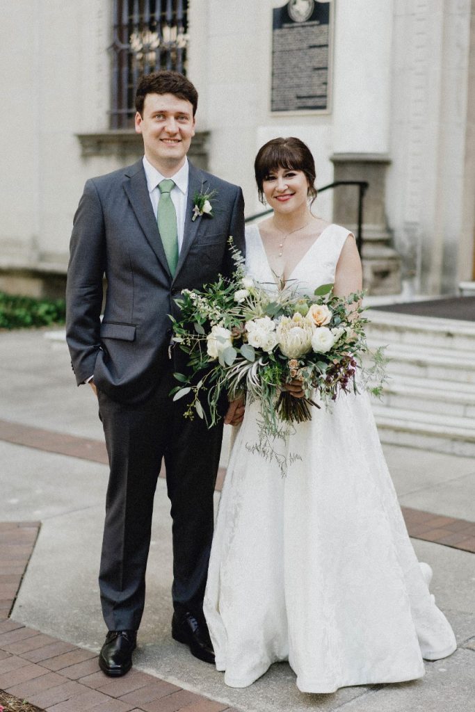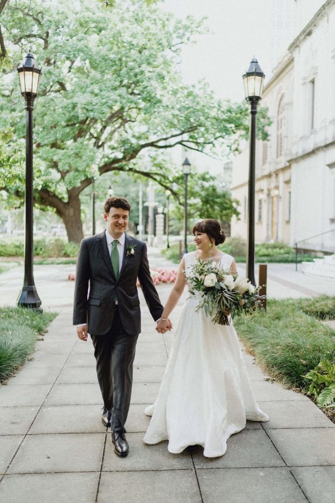 From the bride: “We got married at the Julia Ideson Library in Houston. Our mutual love of books drew us to it originally, and as an art historian, I loved the Spanish Renaissance architecture.”