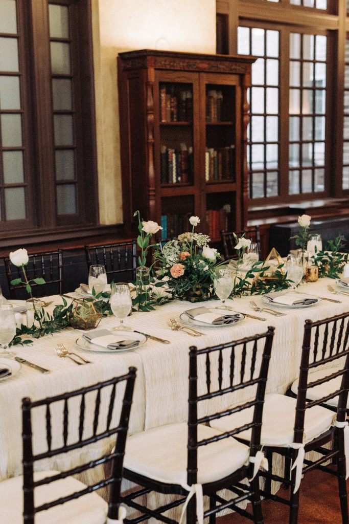 When two bookworms fall in love, is there a better way to tie the knot than a charming library wedding? We think not! Rachel and Paul are cute-as-can-be, and we love how Mallory Ferreira from Two Be Wed helped them create a dream day that was so “them.” Flora + Fauna crafted all the gorgeous florals with plenty of greenery which looked perfect amongst all those wonderful books. Cheers to Rachel and Paul!
