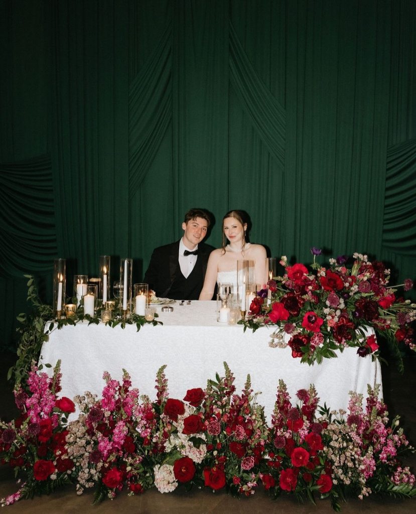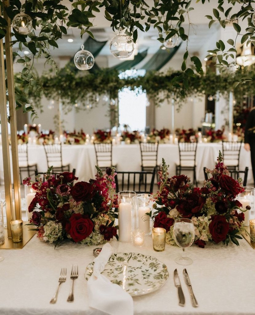 Lilah & Sean’s wedding at Sandlewood Manor was the perfect blend of timeless romance and rich, moody color. Deep red blooms from Garden Party by Green Teams paired with elegant details from Premiere Events made every space feel warm and inviting. The ceremony was especially stunning, with lush aisle florals leading to a greenery-filled altar that created such a romantic setting for their vows. Cheers to The Atchues!