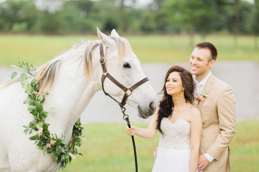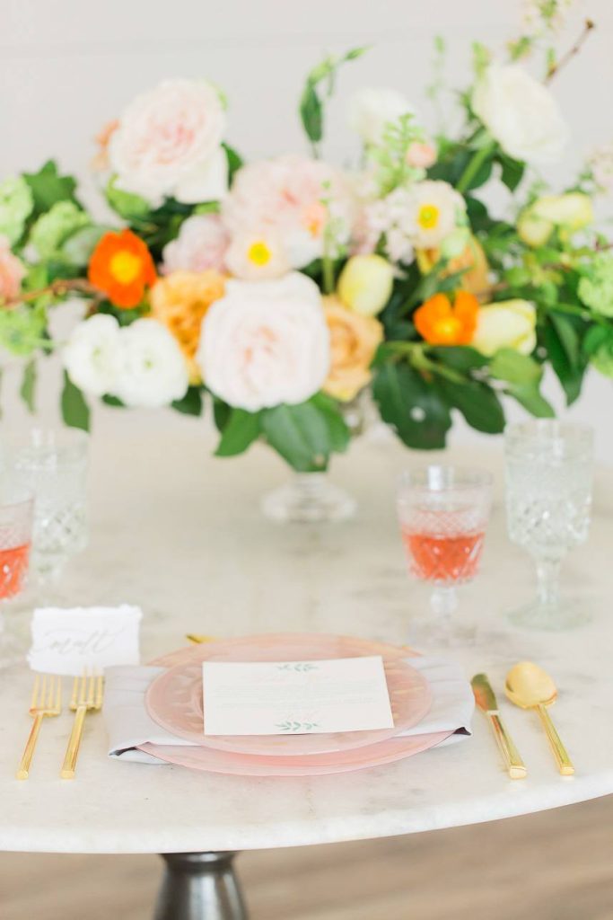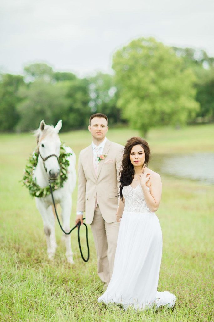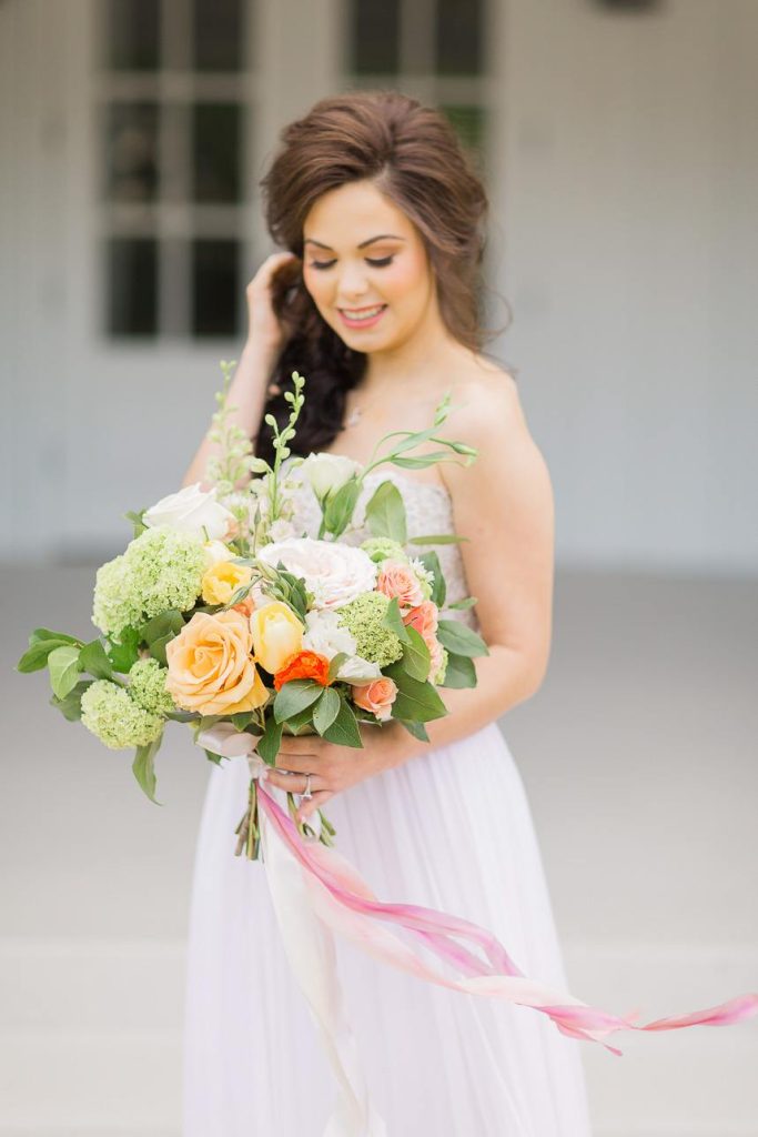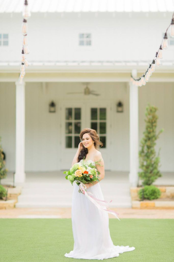 The charming and whimsical elements of this chic farmhouse styled shoot by Lean On Me Events make for the perfect springtime celebration. Captured by The Cotton Collective at The Farmhouse just outside of Houston, the team incorporated brightly colored florals by Bramble & Bee and fun pieces from Rent Some Vintage to set the tone. The model bride wore an ethereal gown from Lovely Bride and a floral hairpiece in her beautiful braid by Blush Worthy. The hand-painted cake by Buttercup Bakery matched the hand-lettered invitations from A Fine Flourish, with floral and gold details making a statement to complete the tablescape. A hand-painted backdrop tied the entire look together. From the colorful floral details to the whimsical balloons, we just keep coming back for more! Be sure to read below to catch the endearing story of how this darling couple came to model for the shoot. Happy Thursday!