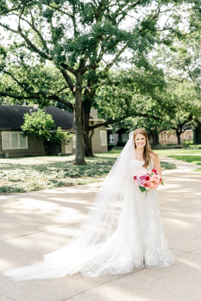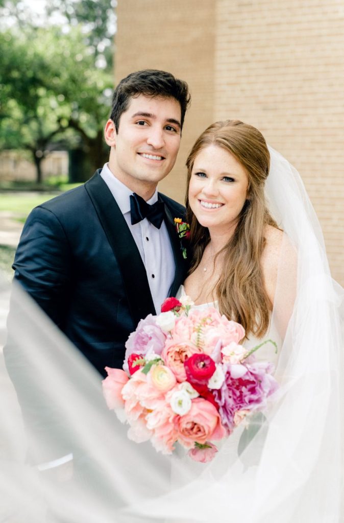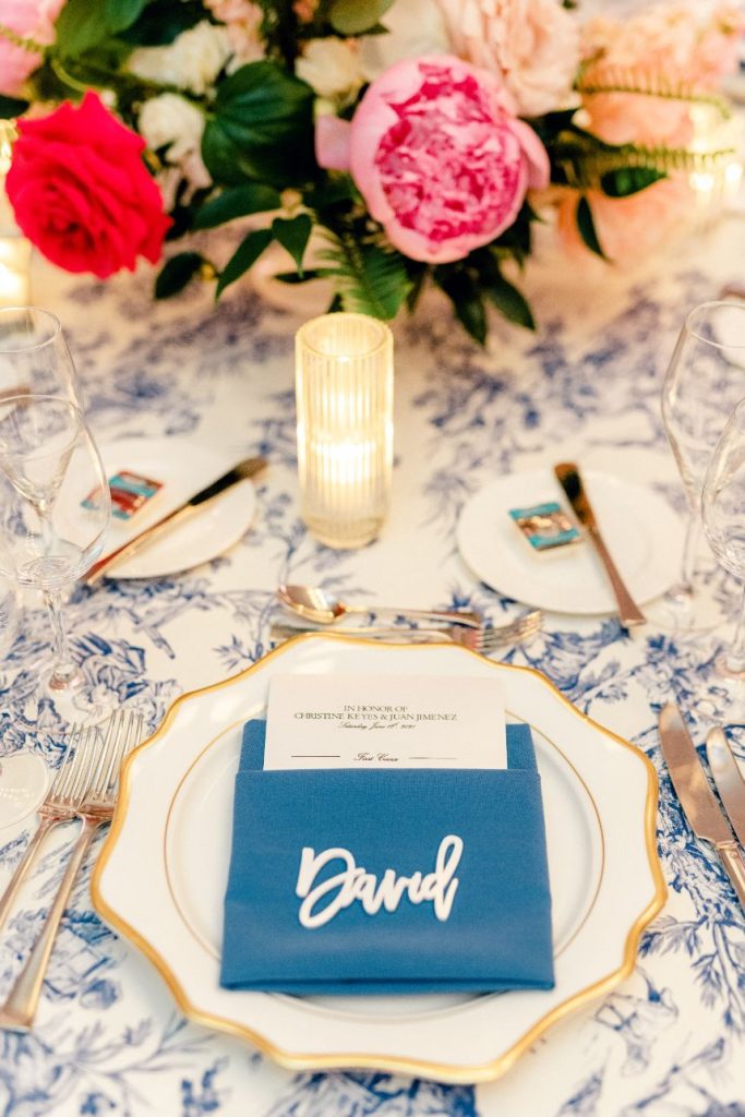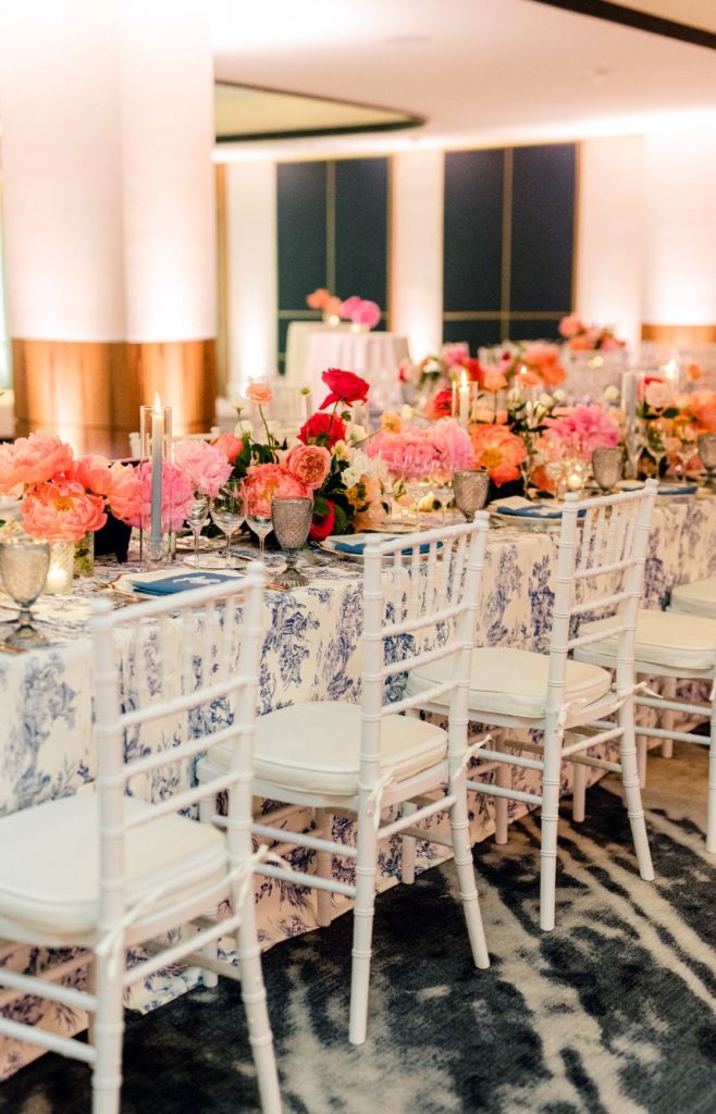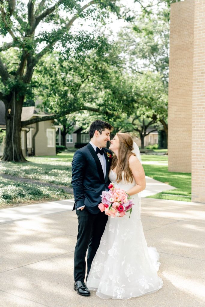 If you are looking for a summer wedding with French blue accents and bright pink summer florals, look no further than Christine and Juan’s big day. Christine and Juan’s wedding was two years in the making. The couple initially planned their wedding at the Boston Public Library in July 2020. However, the couple canceled due to Covid. Christine and Juan rescheduled their Boston wedding for June 2021. However, in April 2021, the couple received news that Boston’s restrictions would keep them from having the day they initially planned. Therefore, the couple decided to keep their June 2021 date and move the wedding to Houston. Two Be Wed helped the couple plan their beautiful day in just two months and took all the stress away.