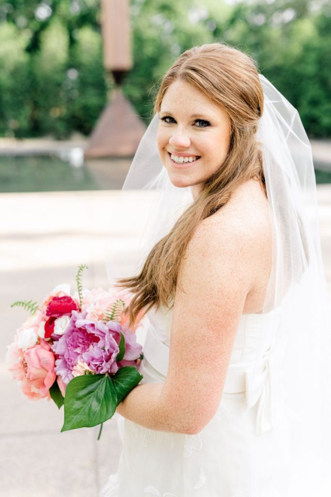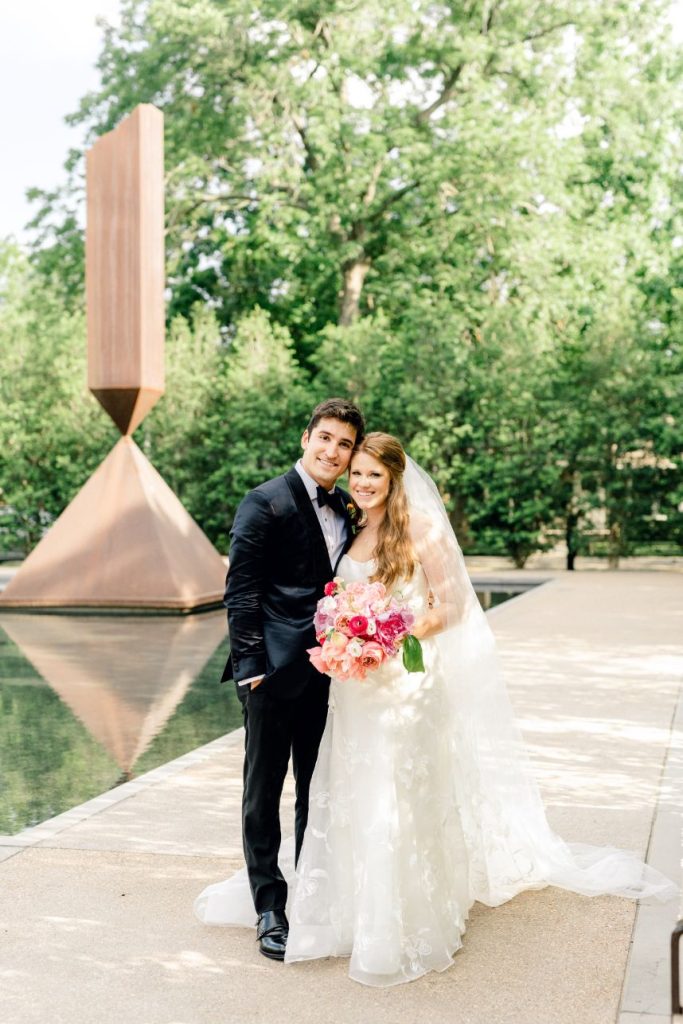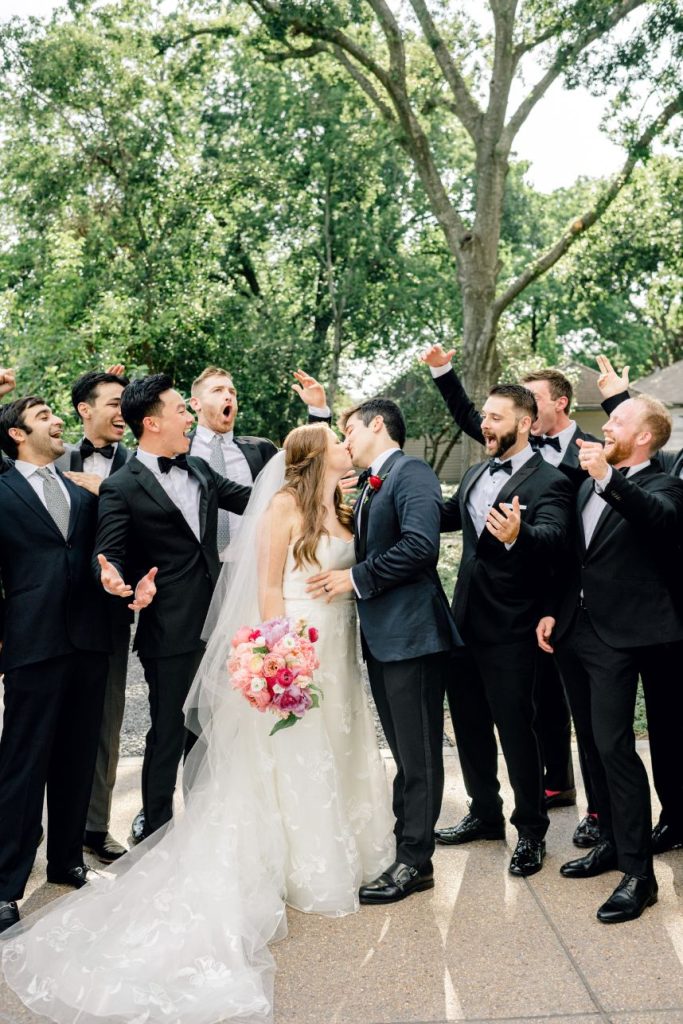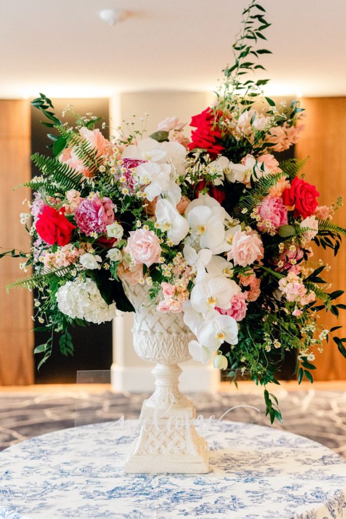 If you are looking for a summer wedding with French blue accents and bright pink summer florals, look no further than Christine and Juan’s big day. Christine and Juan’s wedding was two years in the making. The couple initially planned their wedding at the Boston Public Library in July 2020. However, the couple canceled due to Covid. Christine and Juan rescheduled their Boston wedding for June 2021. However, in April 2021, the couple received news that Boston’s restrictions would keep them from having the day they initially planned. Therefore, the couple decided to keep their June 2021 date and move the wedding to Houston. Two Be Wed helped the couple plan their beautiful day in just two months and took all the stress away.