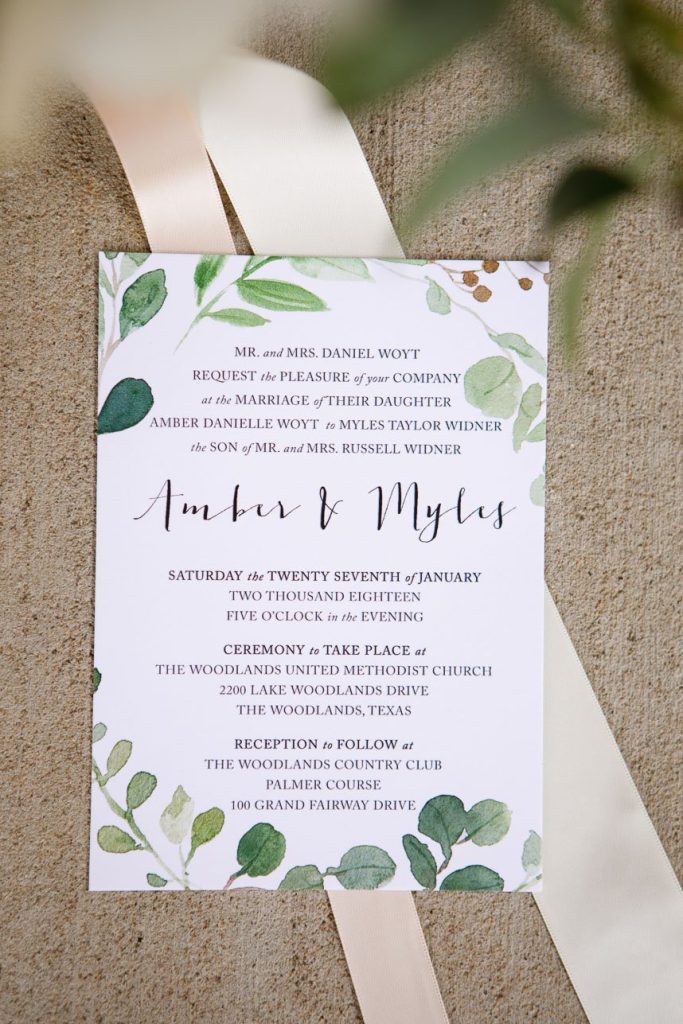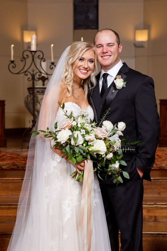 Amber met Myles when she walked into his freshman art class in high school, and the rest is history! The happy couple tied the knot this past winter in a classic country club wedding planned by Alyssa Meeks Events, full of beautiful wintry neutrals, gorgeous greenery and fun, personal touches throughout the day! With rentals from EB Inc., The Woodlands Country Club was transformed into the perfect reception venue for the couple’s winter wedding. LG Entertainment made sure each and every guest had an unforgettable time, with giant marquee letters and fog to enhance the dance floor! Cheers to the newlyweds!