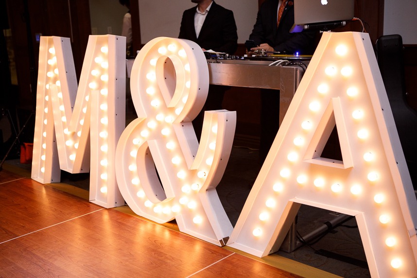 From the bride: “Our wedding day was truly the best day of our lives. We wish we could do it over again 100 times! One of our favorite moments was sitting at the sweetheart table together looking out at all our wonderful family and friends that were there to celebrate US! All of our vendors went above and beyond to accommodate us. We would not change a thing. Our favorite wedding day memory was after the ceremony, getting to sit in our own private room before we walked into the reception. We really could soak in the moment together. Not to mention, The Woodlands Country Club provided us with the most yummy appetizers! All of our vendors were great, but LG Entertainment really out did themselves. Everyone to this day is still talking about how fun the DJ was. Lewis really made the night! They also did the lighting and fun marquee letters for us, which were a huge HIT!”