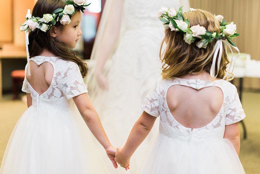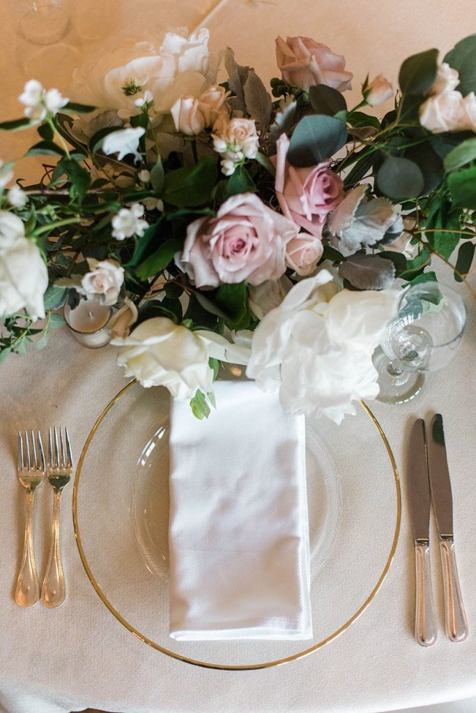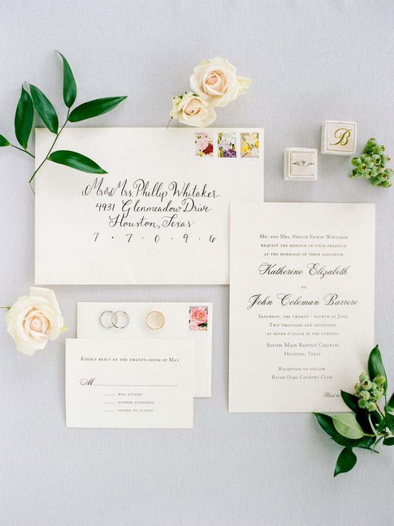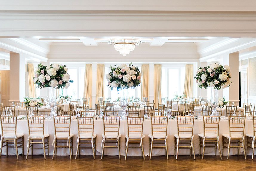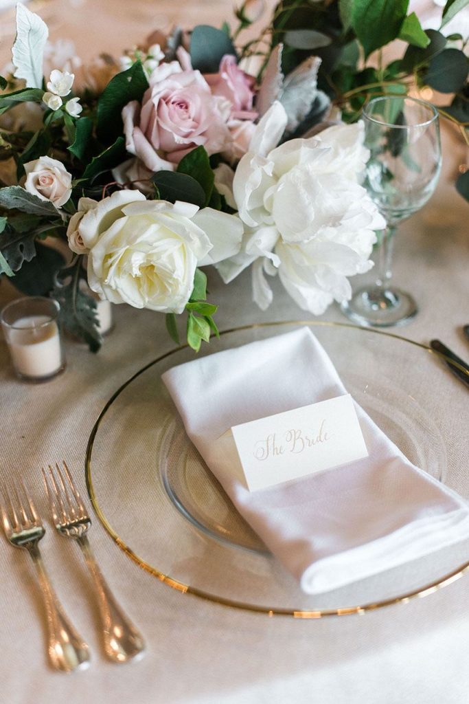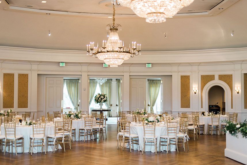 Selecting a clean, neutral color palette and the sprawling River Oaks Country Club as their backdrop, Katie and John’s elegant country club wedding felt nothing short of a classically regal fête. Josh & Dana Fernandez Photography captured all of the evening’s happy moments both indoors and out, taking advantage of the country club’s European architecture and the ballroom’s natural light. Florals from Maxit Flower Design kept with a feminine yet minimal color scheme in bouquets and arrangements of ivory, white and blush hued roses, peonies and hydrangeas. True to the overall aesthetic, Hey Lovely Makeup made the bride look stunning as she walked down the aisle in a gorgeous lace overlay strapless Oscar de la Renta dress from Joan Pillow Bridal, while her maids looked prim and pretty in taupe colored gowns in varying necklines.