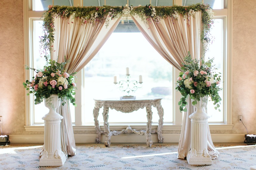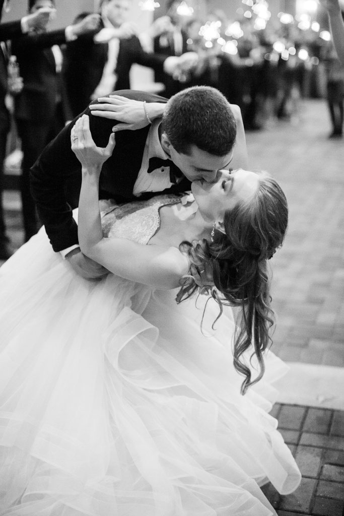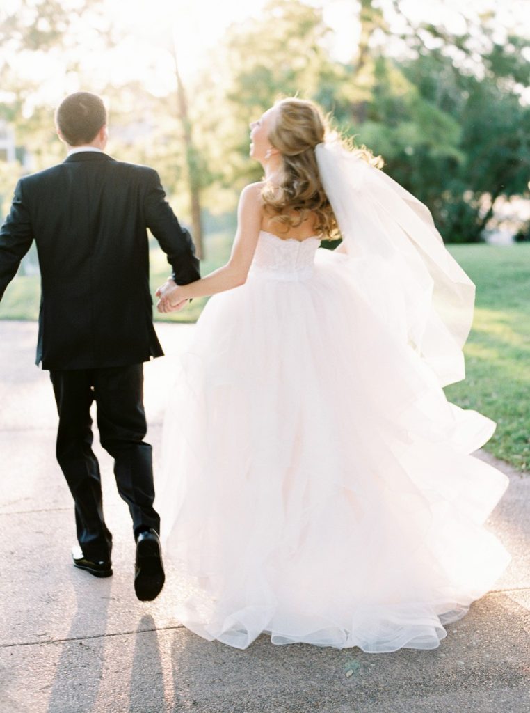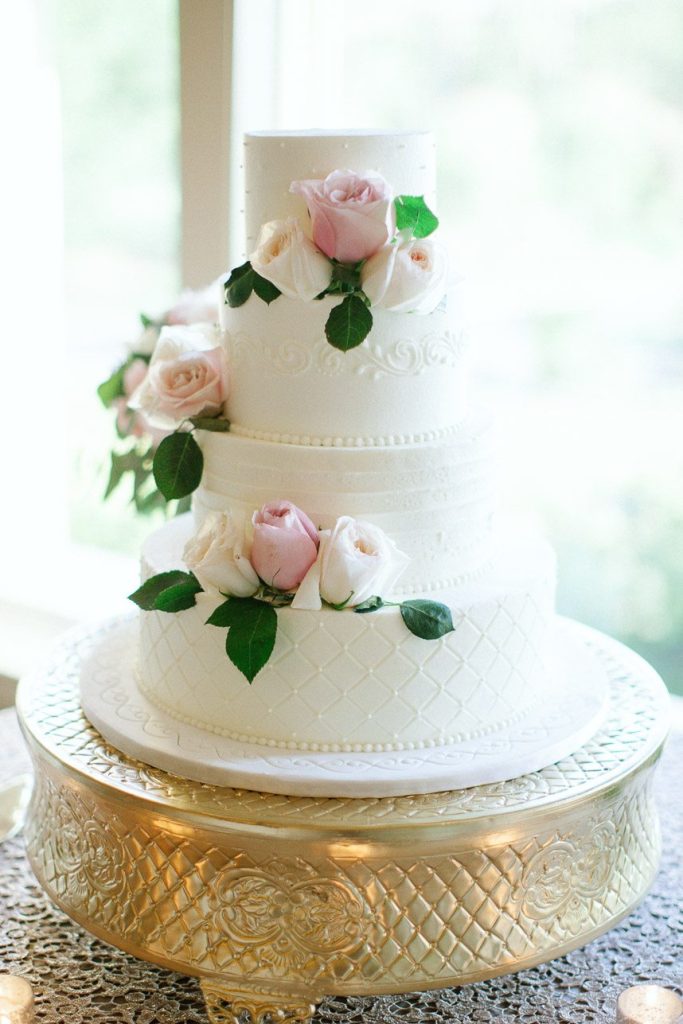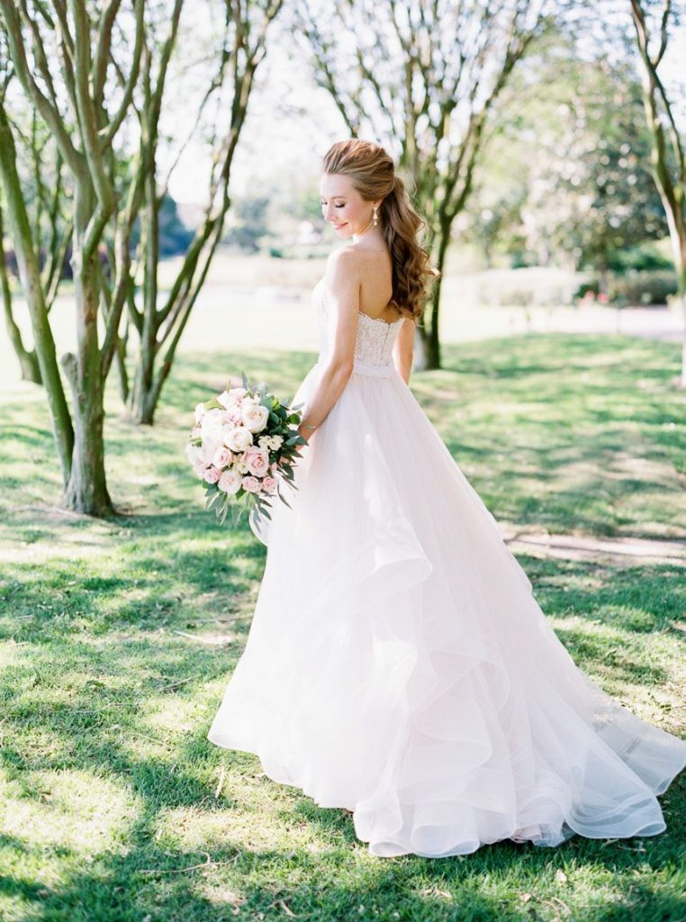 High school sweethearts Alex and William were married in a classic romantic country club wedding seven years after they first began dating. Their beautiful late spring wedding incorporated traditional elements like a minimalist invitation suite with classic typeface, light pink roses and bridesmaids’ gowns to match, with the groomsmen in classic black tuxes. Such a sharp look for a handsome group of guys! As the sun set on Royal Oaks Country Club and flooded the venue with warm natural light, Alex and William’s friends and family looked on as they celebrated the start of their forever together. Billowing floral arrangements pouring out of antique vases accented the tables with greenery and pops of darker pink. Alex looked stunning in her princess-style ball gown with an elegant half-updo and timeless makeup by Adorne Artistry. Roses in white and baby pink sat atop the traditional three-tiered cake from Cakes by Gina – a perfectly sweet way to end the day! Cheers to the Whaleys!
