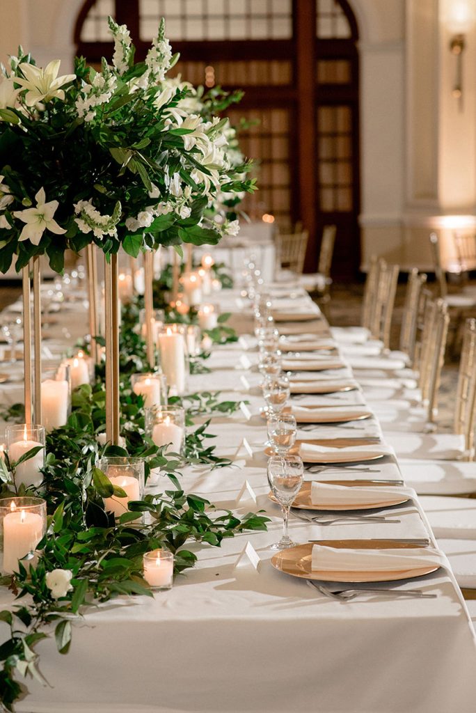 Traditional brides are sure to love Savannah Stait and Sandy Smith’s classic white wedding featuring florals by Lanson B. Jones and Co. Floral and Events and a delicious four-tiered wedding cake from Cakes by Gina! The tablescapes instantly became a fave after seeing the towering, overgrown centerpieces arranged above a greenery table runner. Events by Sarah was their trusted wedding planner extraordinaire and made sure their day was perfect and beautiful in every way. You absolutely must take a look. Cheers to to Savannah and Sandy!