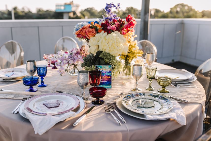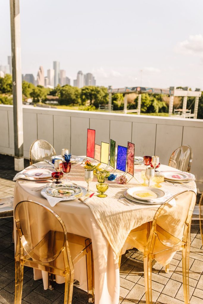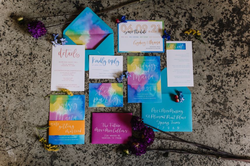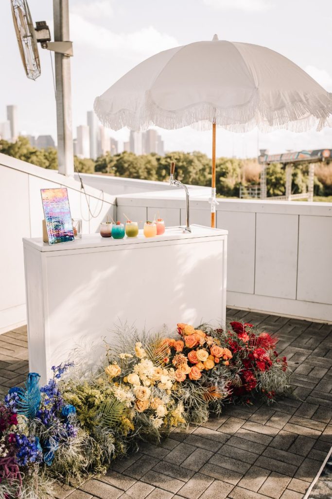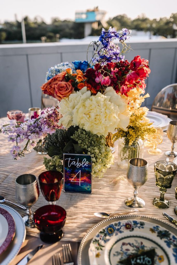 From tablescapes set with simple yet elegant linens from All the Pretty Things HTX to a jaw-dropping rainbow gradient of florals that trimmed the bar and other areas around this LGBTQ+ wedding inspiration, there isn’t a colorful detail that didn’t steal our hearts! Love is love and we’ll be coming back to this blog for design inspo long after Pride month is over. Cheers to love in all forms!