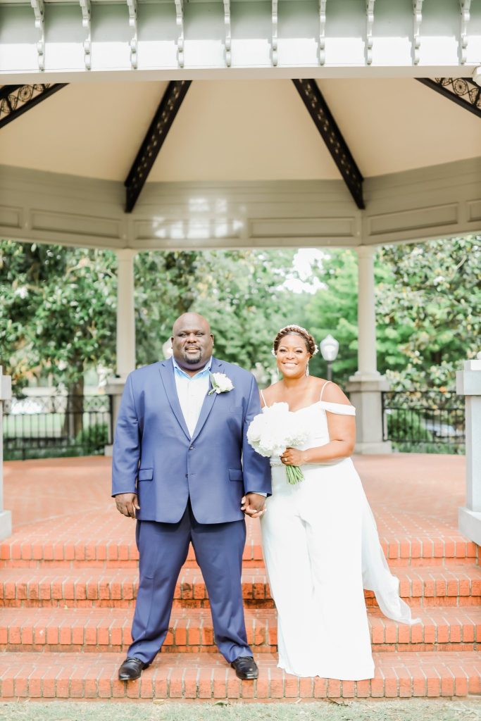 From the bride: “When a global pandemic hit and the world shut down, it could not keep us from honoring our love for one another and keeping our original wedding date. Armed with #PandemicPositivity and unyielding determination, we found a small courthouse nearly an hour from us so we could still obtain our marriage license. With most of Demetra’s family living outside of Texas, a micro-wedding was not in the cards. So, in the early hours on Saturday, May 23rd, with just the two of us and Demetra’s uncle presiding, we were able to say, ‘I do.'”