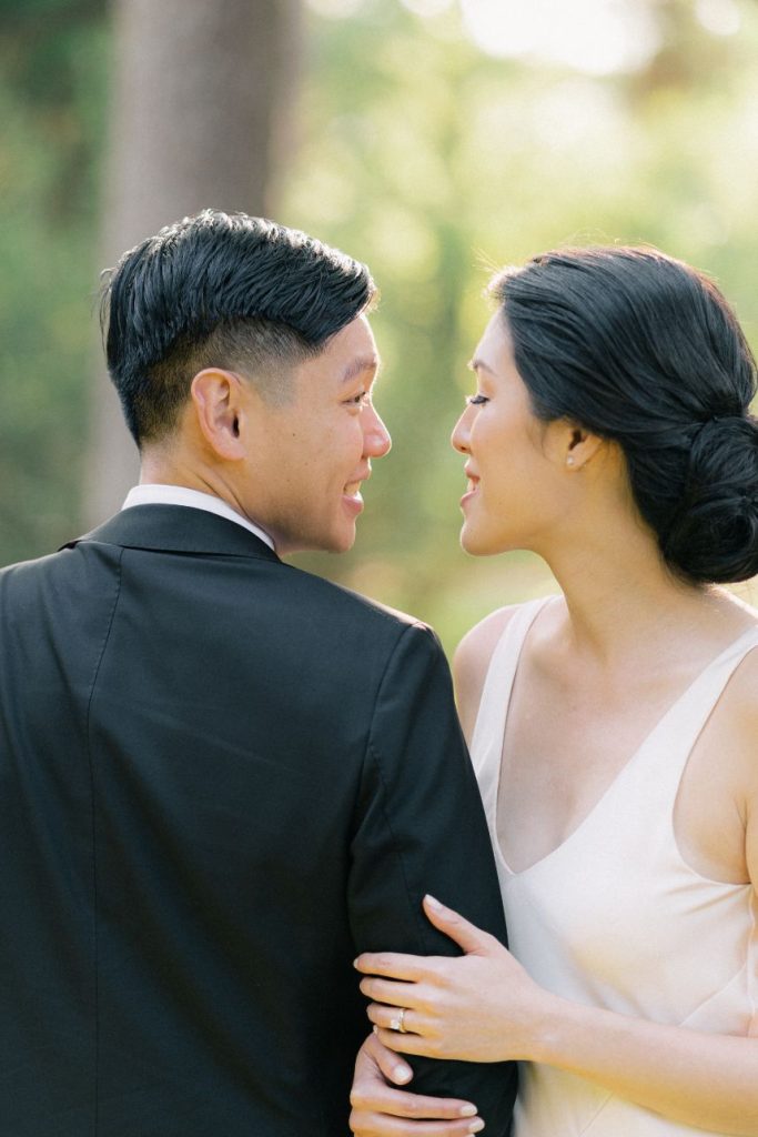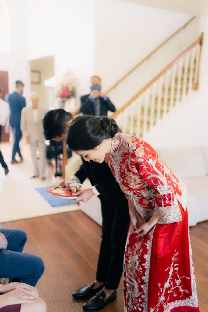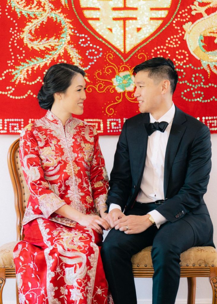 This traditional Chinese tea ceremony elopement was the best choice for this couple’s nuptials for so many reasons, and though it was small-scale in size, it certainly wasn’t small-scale in style. Like many other couples, Joanne and Chris were preparing for a full-scale affair when COVID-19 decided it had other plans. Their March 2021 date for a large wedding quickly turned into an intimate elopement set for November of 2020 consisting of immediate family only. The Chinese tea ceremony is typically held on the day of the wedding where the newlyweds show their respect to the elders in their families by serving them tea. In turn, the families show their acceptance of the marriage. The ceremony symbolizes the union of two families, usually taking place inside the couple’s respective family homes. Since the couples’ grandparents recognize the ceremony as the official wedding, it made perfect sense for Joanna and Chris to tie the knot this way, celebrate in their own fashion, and end the day with a formal photoshoot by FR Weddings to capture their wedding day glow on camera. A red and pink palette has our hearts and this wedding’s color scheme was carried through their traditional attire, which also held significance. For the tea ceremony, Joanne wore a traditional two-piece Chinese wedding dress that included a jacket and skirt called qun kwa (or kua). This dress was passed down to all the women in her family, which she says made the day feel even more special. In their evening photoshoot, Joanne wore a simple and elegant cream satin dress while Chris wore an all-black suit with Gucci loafers. Through all the changes, the two managed to keep high spirits and Joanne says they even learned a thing or two in the process. “We decided to celebrate our marriage through a traditional Chinese tea ceremony, and although our plans constantly changed, we learned that what made our wedding day special wasn’t the flowers, decor or outfits, but being celebrated and showered with love from our family and friends,” Joanne says. We can’t think of anything better than celebrating your love with the ones that love you most. Read on for a note from the bride about one of her favorite wedding vendors and what made them so special. Cheers to the Huas!