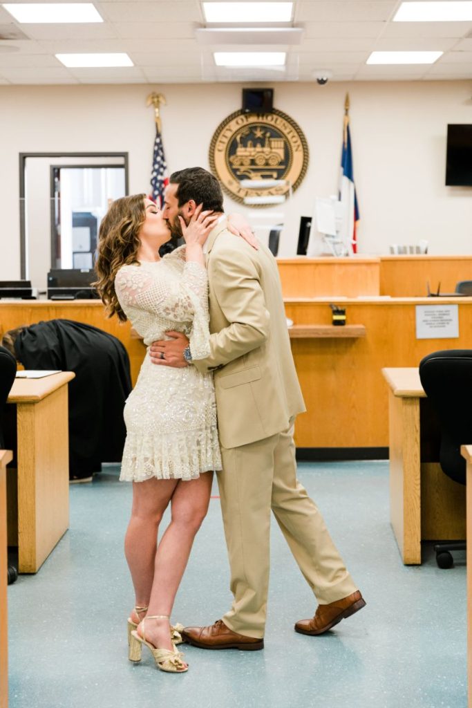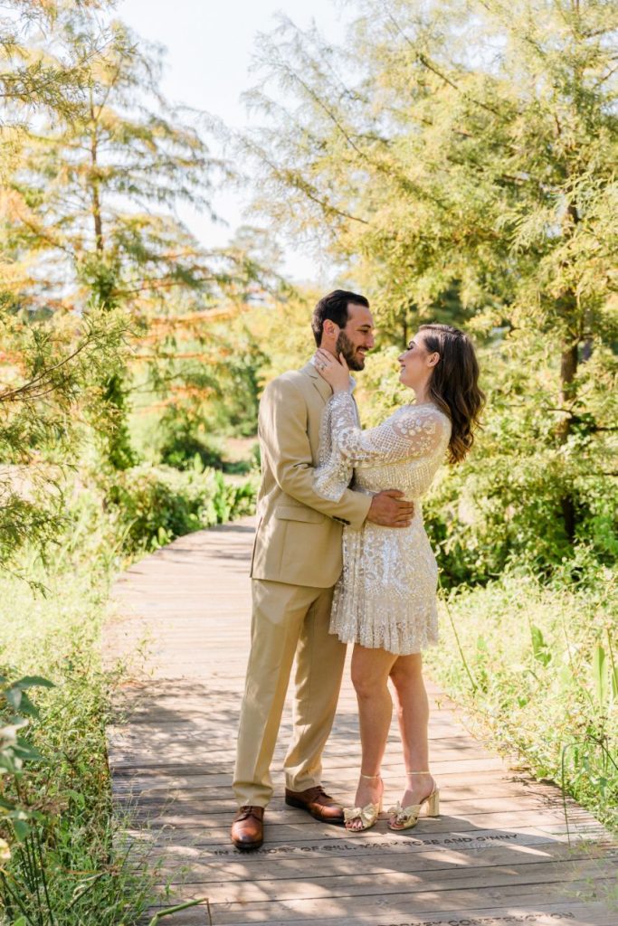What’s more romantic than a classic courthouse elopement set city-side in Houston? We truly couldn’t say! Alexandra and William first crossed paths in 2017 during a night out with friends while they were both attending the University of Houston. The pair later saw each other at a football tailgate and ended up watching the game together. The rest, as they say, is history! When William decided the time was right to pop the question, he told Alexandra they were going to dinner with his sisters back in his hometown of Beaumont, TX. They set out for dinner and began driving through a wooded neighborhood where Alexandra says she thought the restaurant might be hidden. William finally stopped at a nearby field where he had a whole picnic setup waiting, and he got down on one knee to ask Alexandra to marry him. The two married in a lovely courthouse elopement ceremony at the Houston Courthouse followed by photos around the Houston Arboretum & Nature Center!