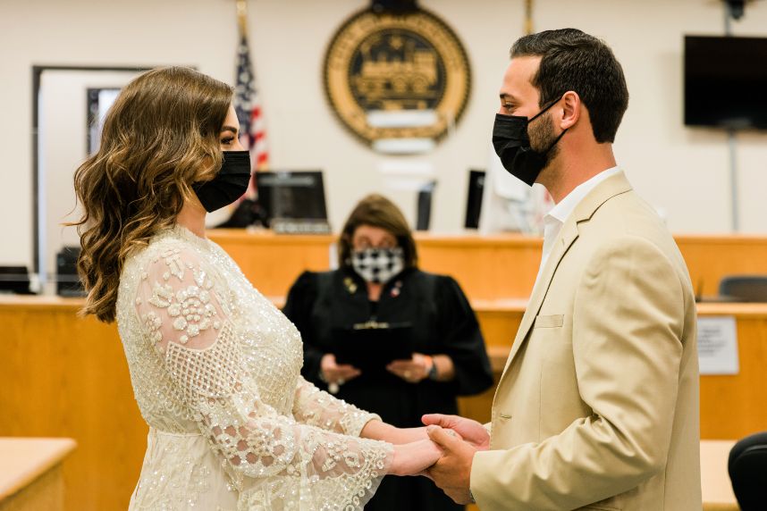 Their mid-September courthouse elopement captured by Natalie Nicole Photo was everything a small-scale elopement should be – effortless and neutral but oh-so-classy! Alexandra and William went about it in the sweetest way possible, celebrating their love with just the two of them before a judge where they were pronounced husband and wife. These shots capture so much raw emotion from the small moments exchanged between the newlyweds throughout the day. Read on for a note from the bride about why she and her groom chose a courthouse elopement for their nuptials! Cheers to the new Mr. and Mrs. Gavrelos!