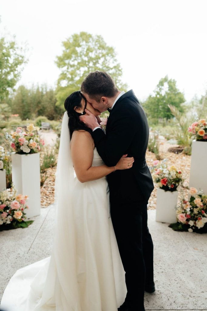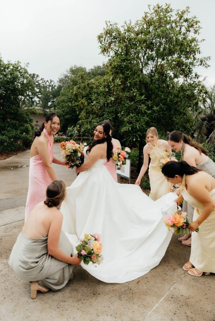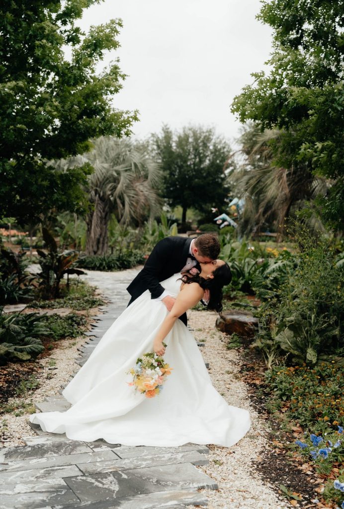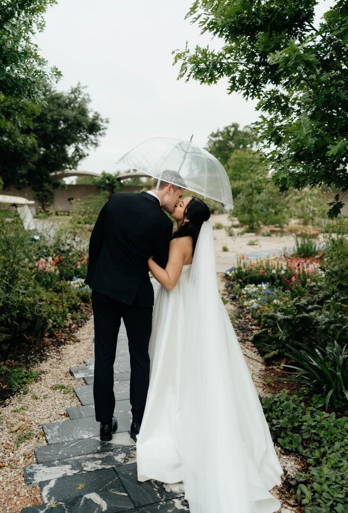 “Cristina and Noah’s wedding took place at the Houston Botanic Garden, and while it rained for most of the day, the weather added a layer of magic to their celebration. Miraculously, the sun came out just in time for their first look—a moment that felt truly unforgettable. When the rain picked back up, we pivoted and held the ceremony under the alcove, with friends and family lining both sides of the long walkway. It turned out to be even more stunning and intimate than the original plan. Afterward, everyone celebrated with an unforgettable night of dancing and joy.”
