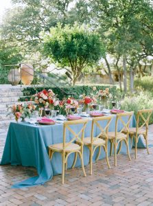 Your wedding day brings together family and friends, old and new. What better way to encourage conversation and intimacy in a large group setting than to utilize a long farmhouse table instead of multiple rounds? Longer tables make for great conversations and fabulous decor – just look at that greenery runner!