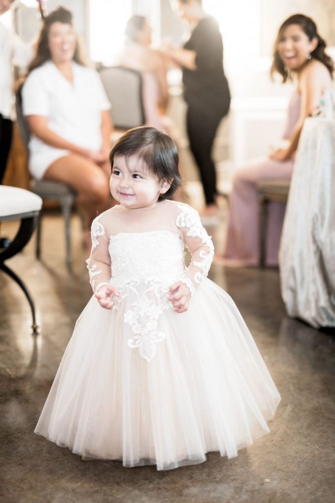From the bride: ”My favorite detail of the day was definitely the dress I had made for my daughter that she wore during the reception. I designed it myself and had it made using pieces from my own gown. It was the most beautiful touch for my daughter to be wearing pieces of my dress to celebrate the marriage of her parents.”