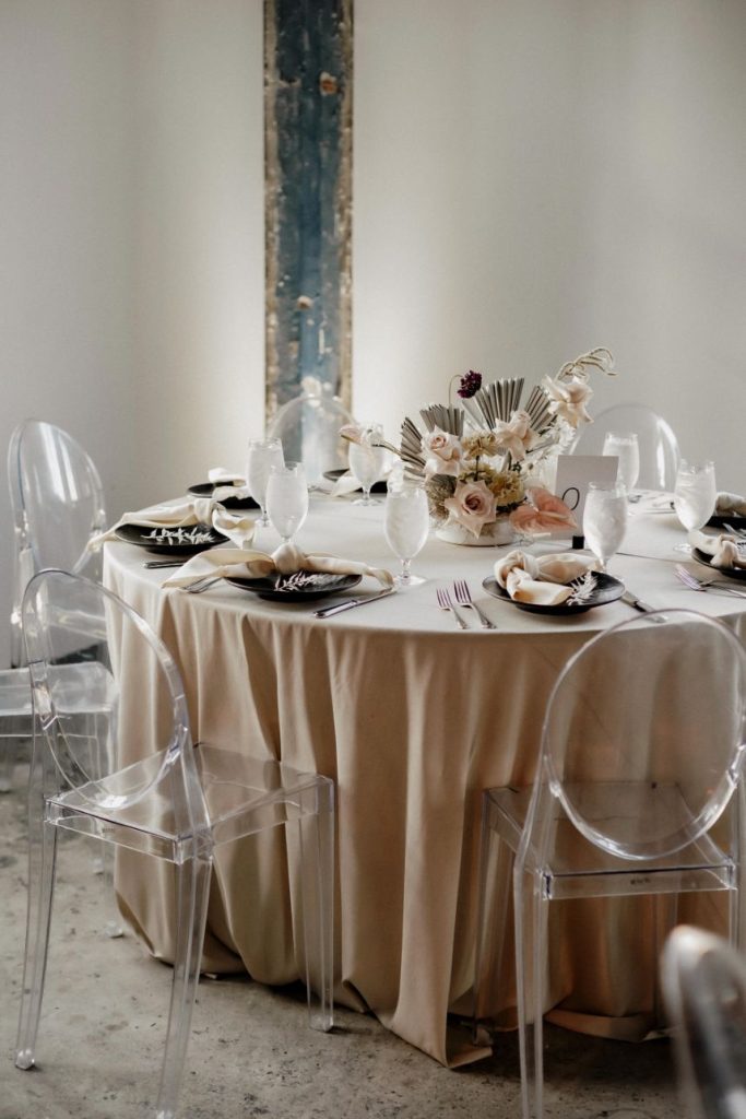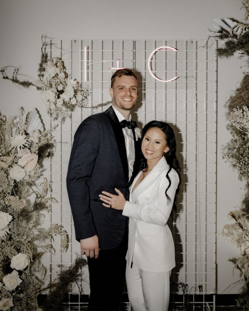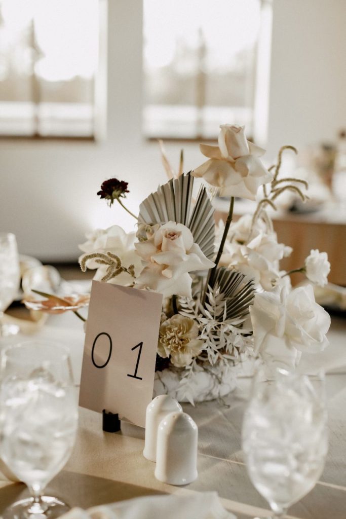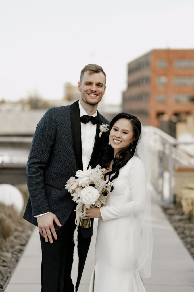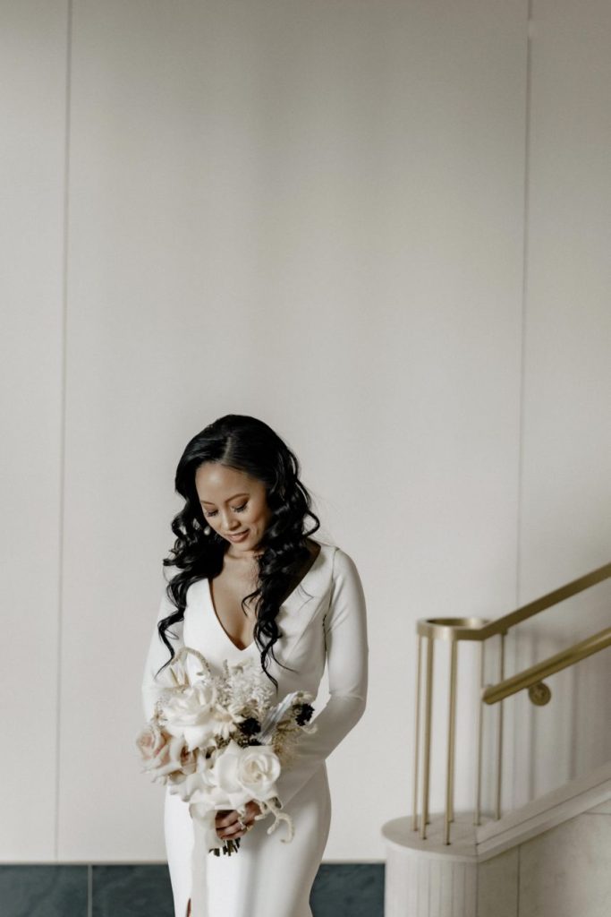Dried grasses and florals, organic neutrals and modern architectural design all combine to create a seriously showstopping bohemian wedding held at the Sunset Coffee Building! This venue has so many spaces to offer and Isabelle and Chris tied the knot in an elevated rooftop ceremony (no pun intended), then headed down to the first floor to an industrial-style space with a balcony overlooking the bayous. Flora + Fauna went above and beyond with suspended, dried florals and wild-edged arrangements in all the most tasteful areas, accented with cascading sun-bleached amaranth and dried pampas among other pretty petals to captivate the boho feel! Isabelle looks gorgeous from head-to-toe, and we love her big Hollywood curls paired with simple bridal glam by Adorne Artistry – the look is just as perfect with her long-sleeved gown as it is with her white pantsuit reception outfit! SO cute! The newlyweds and their guests celebrated in high-fashion style, and with their soiree perfectly planned by Chancey Charm Weddings, it went off without a hitch. Cakes by Gina created a sleek and simple tiered white wedding cake adorned with a few berries for good measure. So many modern and organic elements take this wedding to another level, and some of our favorites were the aura reading portrait yurt as well as the wire photo op complete with dramatic dried florals and the couple’s initials in bright pink neon! Every detail in this modern, bohemian wedding is so cool and chic! Read on to hear a note from the bride about one of her favorite wedding memories. Cheers to Isabelle and Chris!