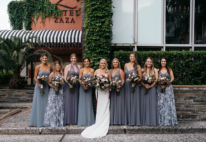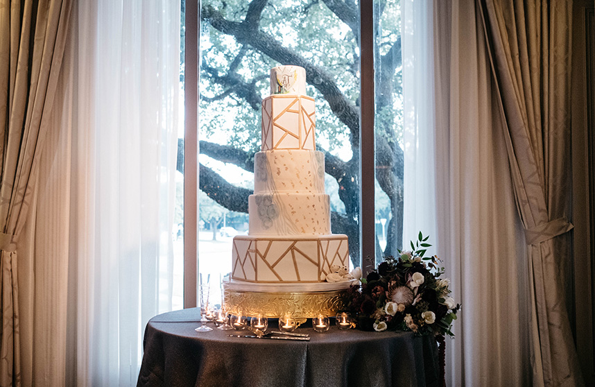For all of you brides dreaming of a moody summer wedding, Annie Dowling and Trey Shanks’ wedding day is definitely for you! Full of eclectic style and bold jewel tones, the couple’s big day was captured perfectly by Caroline Fontenot. Annie and her bridesmaids had their hair and makeup done flawlessly by the wonderful Hey Lovely, and can we talk about those clips in Annie’s hair? Absolutely iconic! With bold florals and elegant decor pieces, Flora & Eventi totally stole the show. Not a detail of the Shanks’ day was missed thanks to Mallory of Two Be Wed, and we’re totally here for it. And speaking of details, you’ve got to see this stunning cake from Cakes by Gina! With five tiers of tastiness and geometric shapes galore, it’s an absolute stunner. Check out all of this prettiness below!